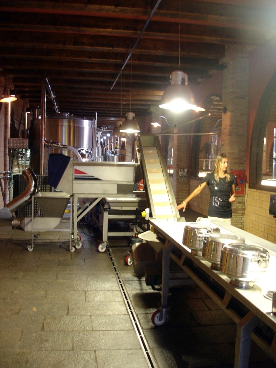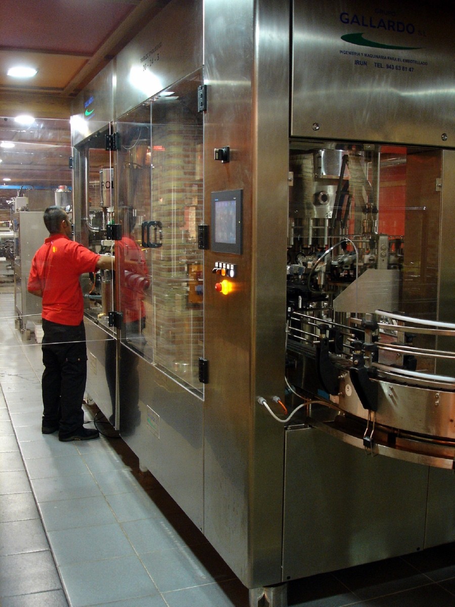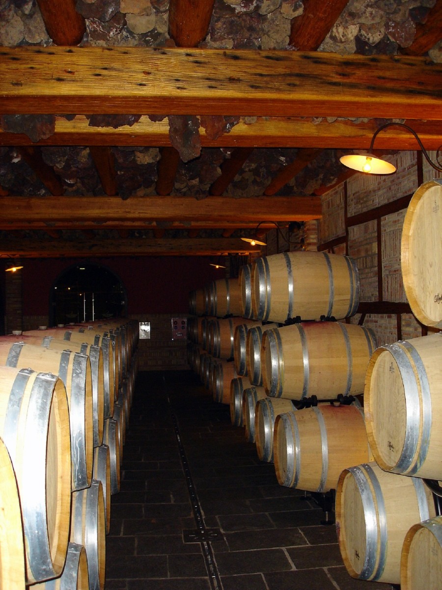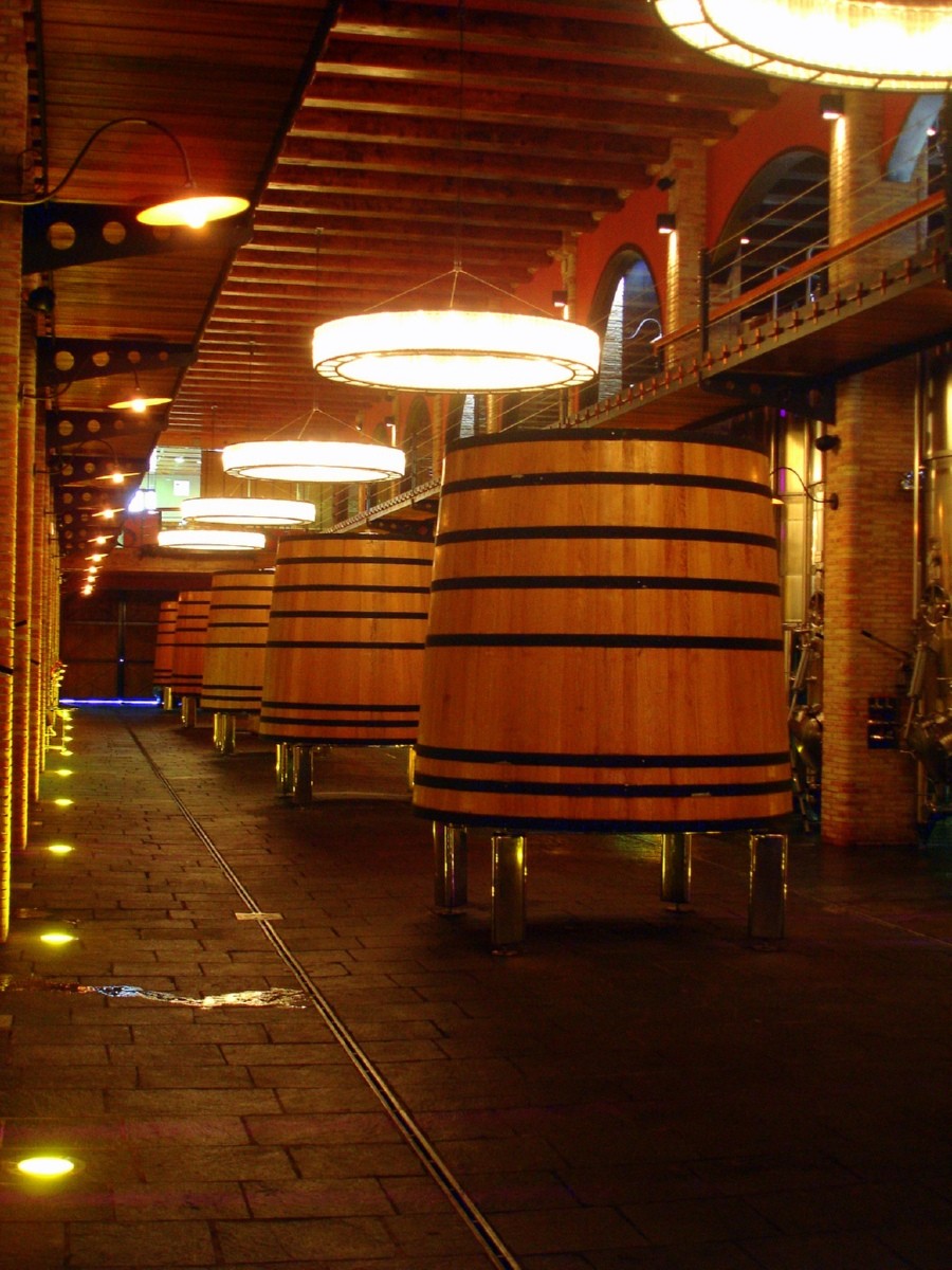 Desde aquí, y subiendo hacia la bodega situada en el interior de una colina, visualizamos todo el conjunto (el restaurante exterior, el jardín, el terruño, etc.), para pasar al interior de la nave donde se selecciona la uva (20% de producción propia y el resto de los viticultores de la zona), donde una vez elegida será almacenada a baja temperatura para, un día y medio después, ser convertida en mosto.