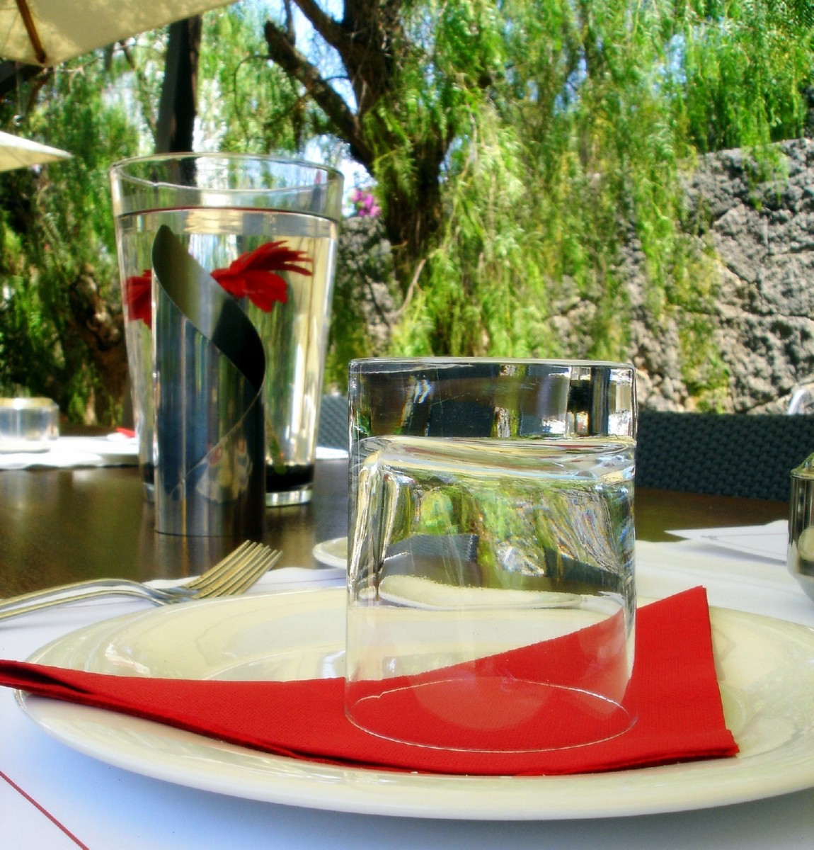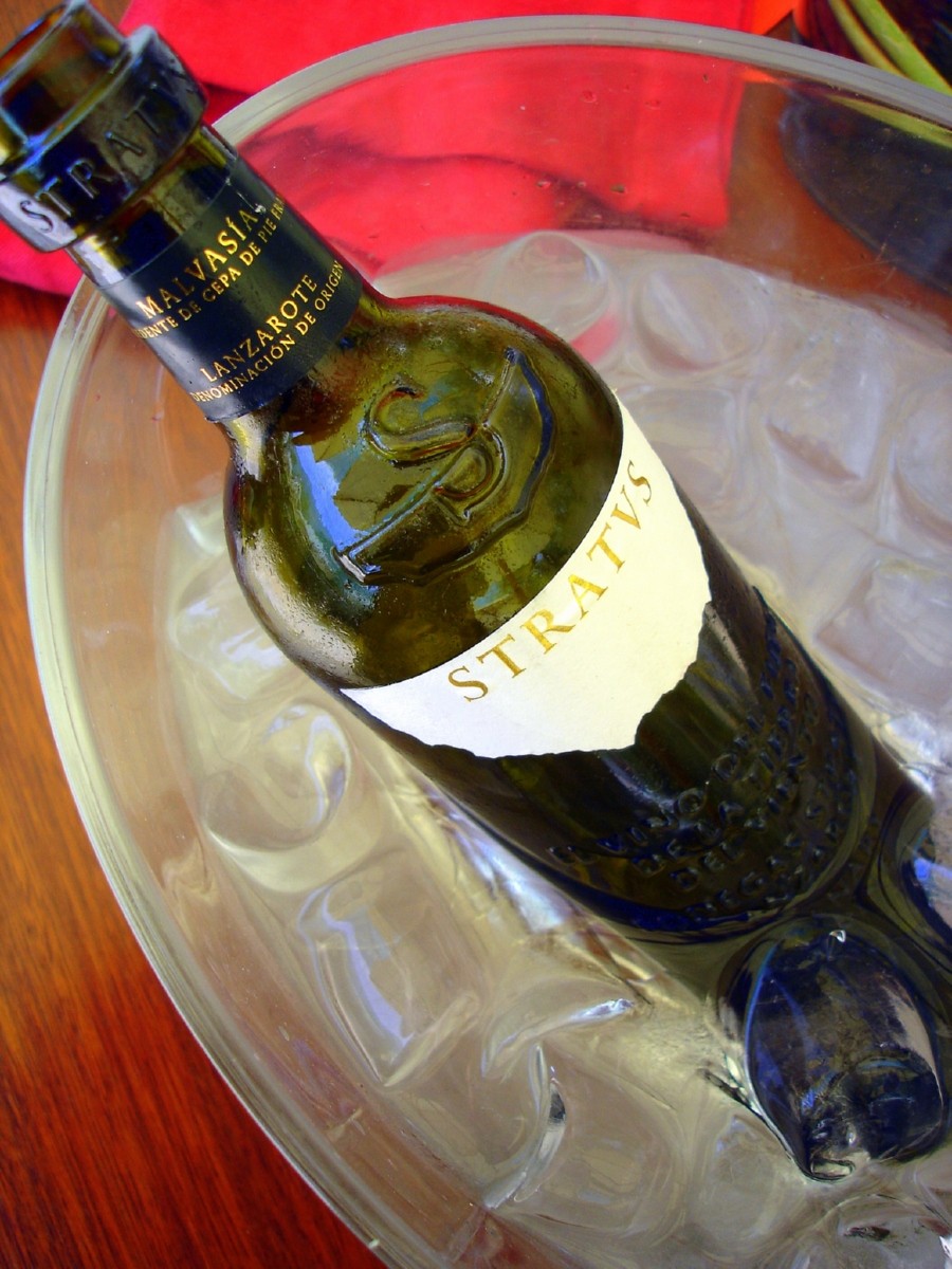 Una vez finalizada la cata, y después de una hora desde que comenzáramos la visita a Stratvs, nosotros volvimos al comedor exterior donde dimos buena cuenta de los platos elegidos en la carta armonizados, como no podía ser de otra manera, con una botella de «Stratvs Malvasía Seco«, 12’5€ la botella de 50 ml.