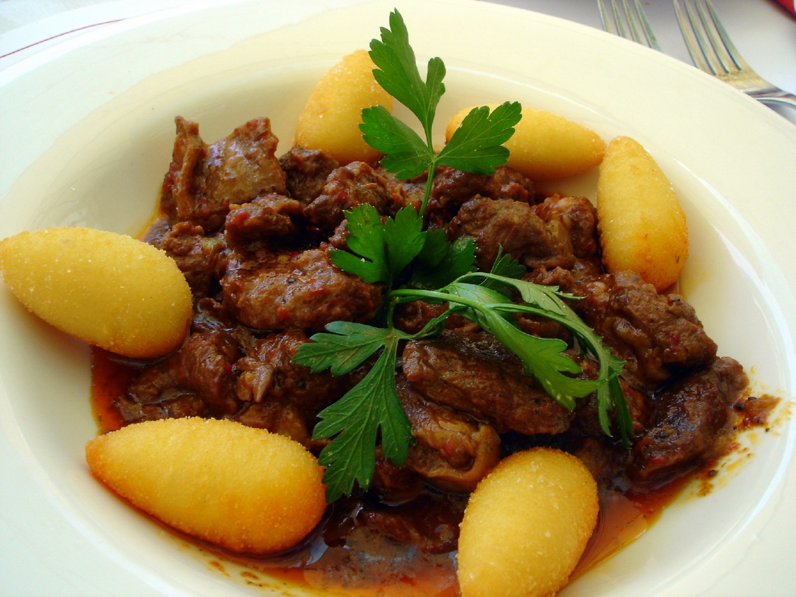 Un contundente y tradicional plato de la zona, «guiso de carne de cabra de la Finca de Uga» (8’5€). Sabroso aunque algo aceitoso para mi gusto.
