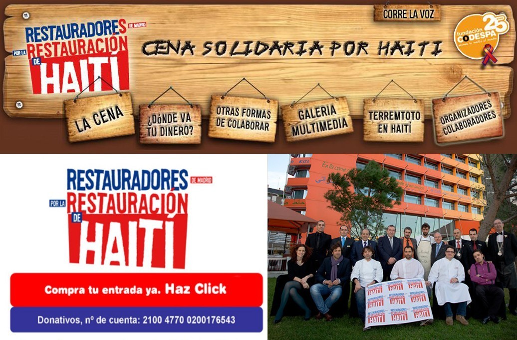 Esta noche, a las 20h en el Hotel Silken Puerta América Madrid (Avenida América, 41), tendrá lugar una cena benéfica, bajo el lema «Restauradores por Haití», para ayudar a las víctimas del reciente terremoto que desoló Haití.