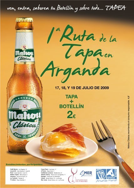 La primera edición de la Ruta de la Tapa, organizada por el Consistorio argandeño en colaboración con la Asociación de Hosteleros del Sureste «El Páramo», la Asociación Madrileña de Empresas de Restauración y Cervezas Mahou, se celebrará en la localidad madrileña desde hoy hasta el próximo domingo 19 de julio en diversos locales del municipio.