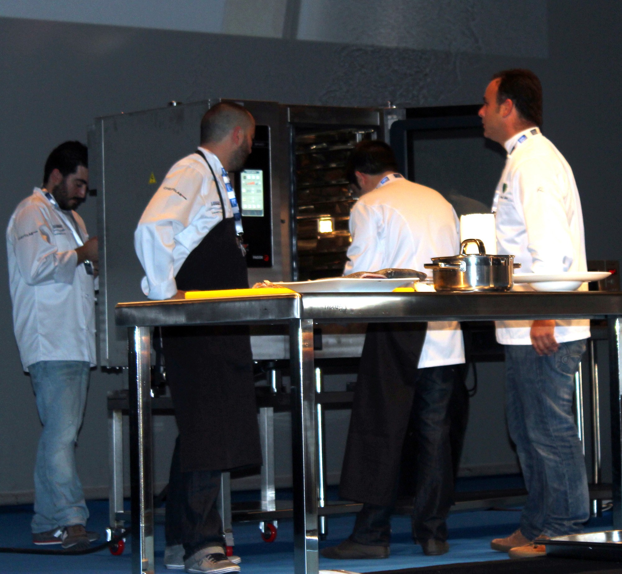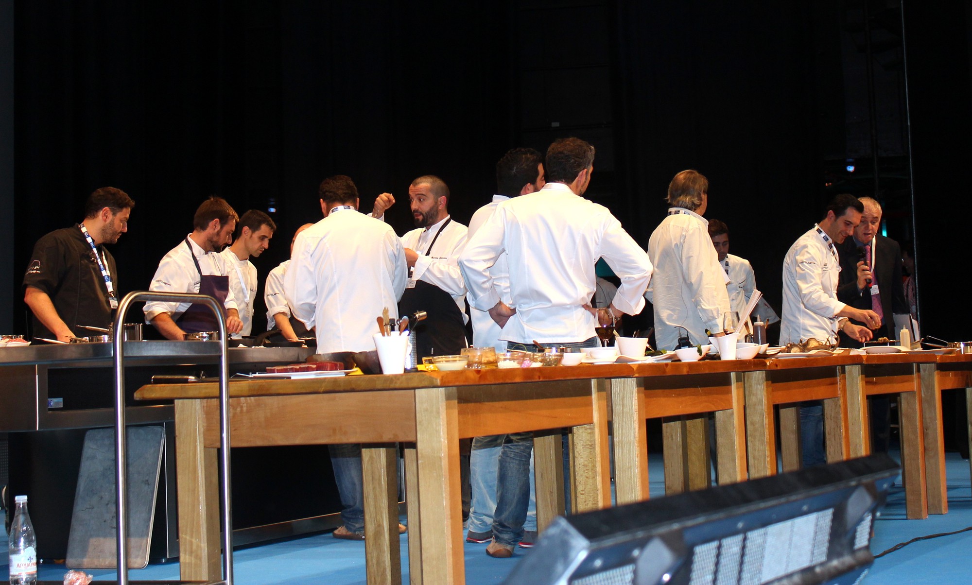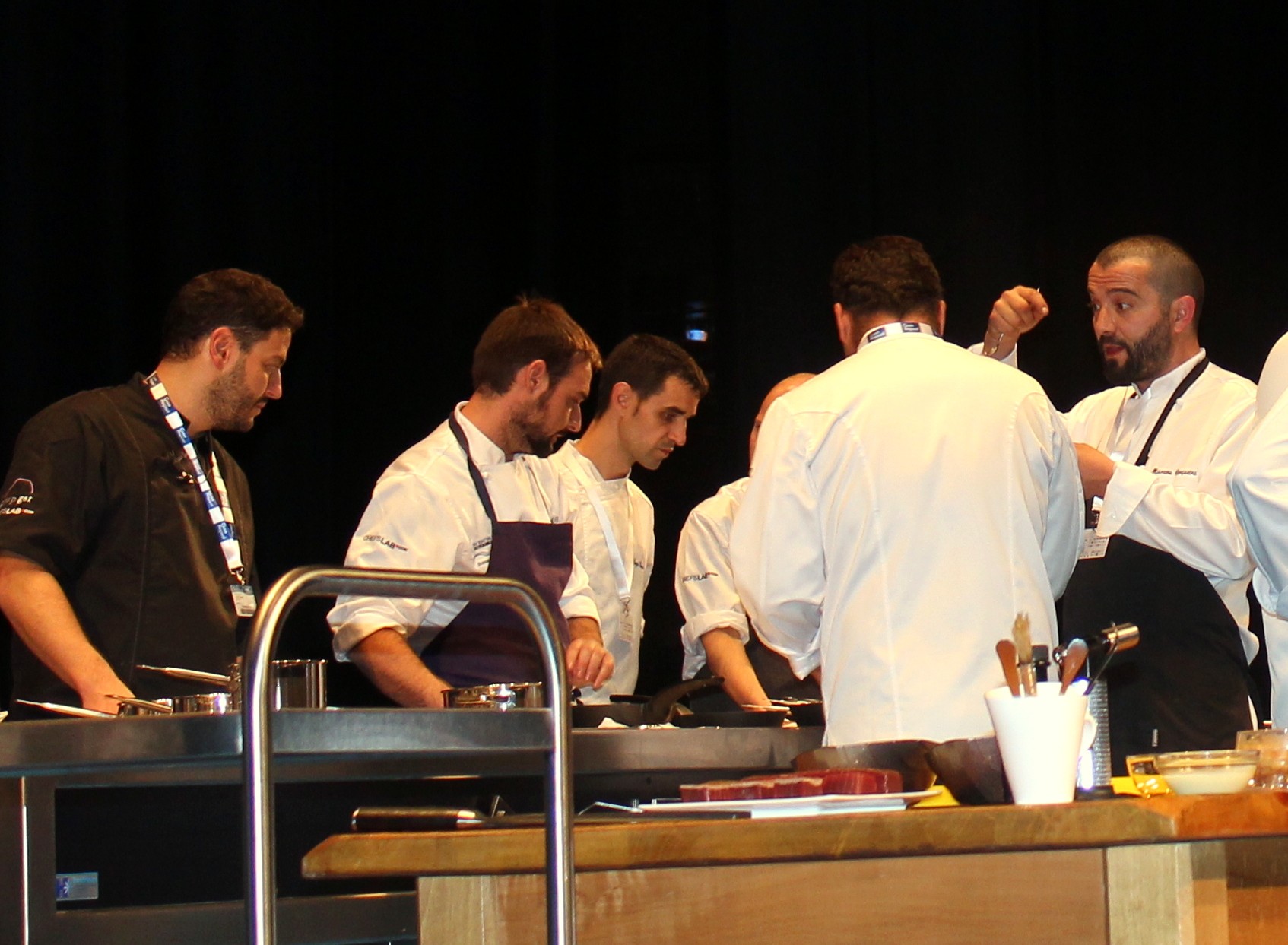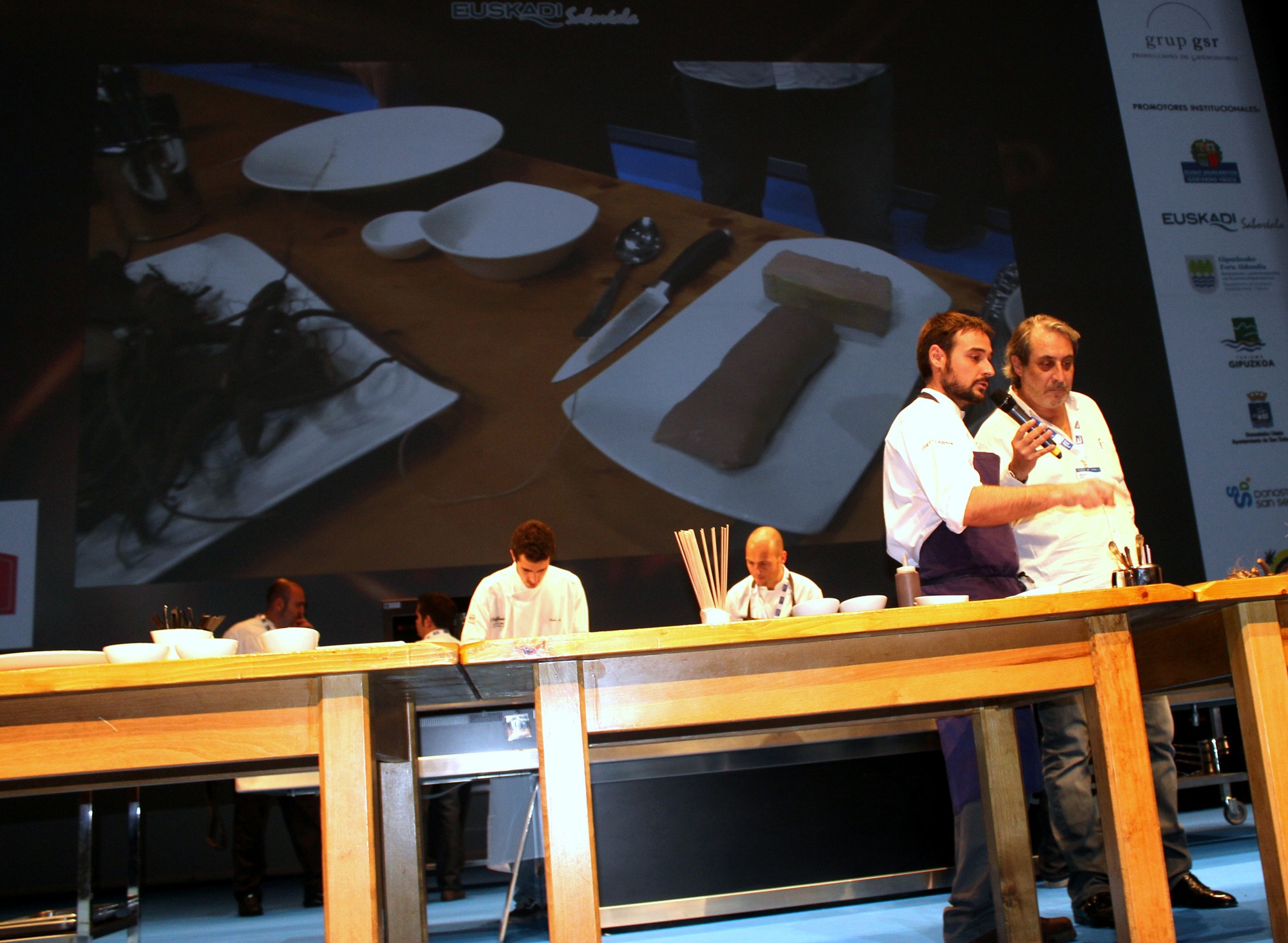 Tras presentar cada uno de ellos sus platos, los cocineros han ido pasando por las cocinas de sus compañeros y han hecho una especie de «Pic-nic» en el escenario de Kursaal, probando y disfrutando las distintas elaboraciones.