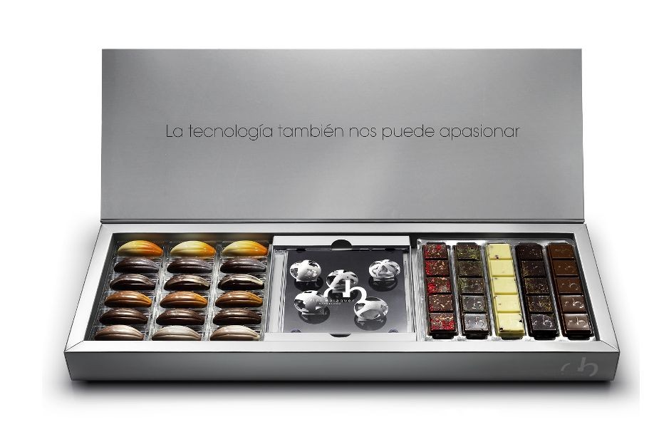 Un único concepto que reúne chocolate y tecnología en un impactante embalaje. Una vez abierto, nos encontramos con unas delicias de chocolate acompañadas por un documental audiovisual que nos muestra el origen del cacao y los procesos más innovadores que aplica Oriol Balaguer a sus invenciones más dulces.