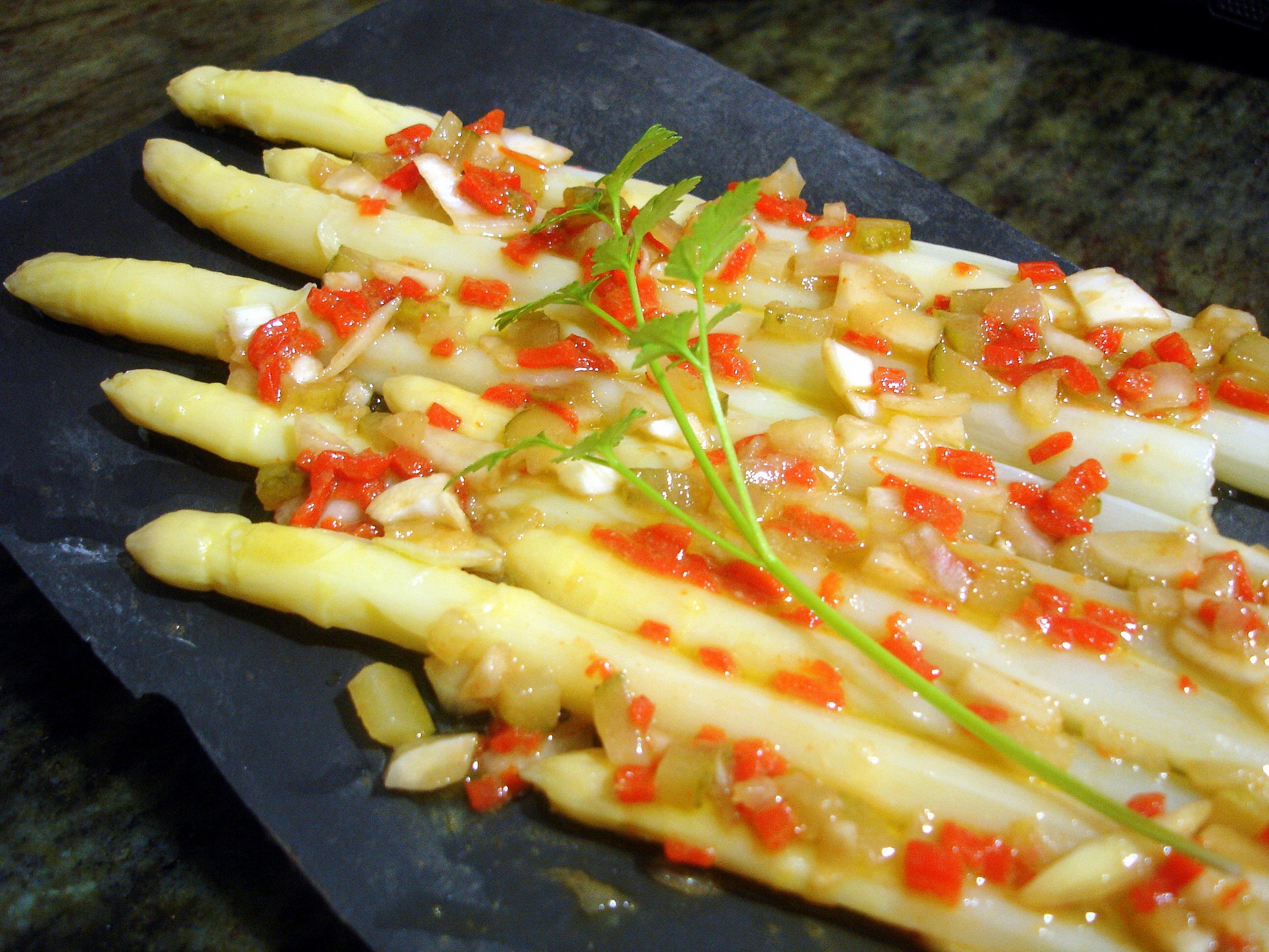 8. Una vez que tengamos cocidos y fríos los espárragos les servimos acompañados con la vinagreta.