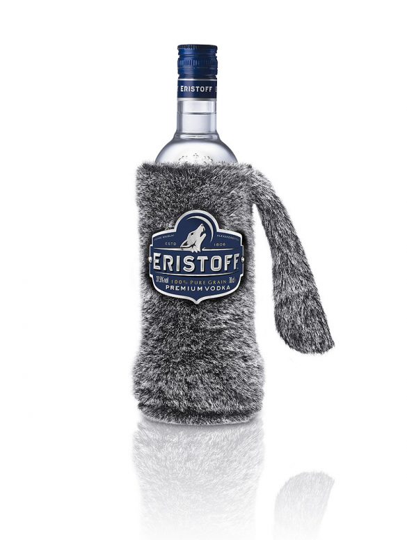 Con motivo de las próximas fiestas navideñas, Eristoff sacará al mercado el pack edición limitada Wolf’s Tail. Una botella recubierta por una imitación de piel de lobo, cola incluida, inspirada en el lobo caucásico que representa a la marca georgiana.