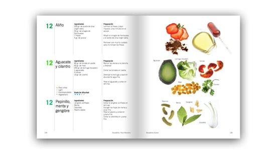 Después de salivar un rato, aparecen las recetas de las 25 ensaladas, combinadas con diferentes tipos de aliños y acompañamientos, divididos en aceites, salsas y vinagretas.