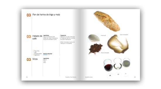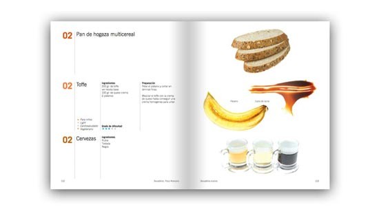 Luego el orden en el que nos muestran las 75 recetas. Empieza por los bocadillos, 50 clases de bocadillos divididos entre cuatro formas diferentes de elaborarlos. Encontramos los bocadillos calientes, los que son untables, unos dulces u otros más modernos llamados de «fusión». También encontramos diferentes tipos de pan así como la bebida que le va mejor.
