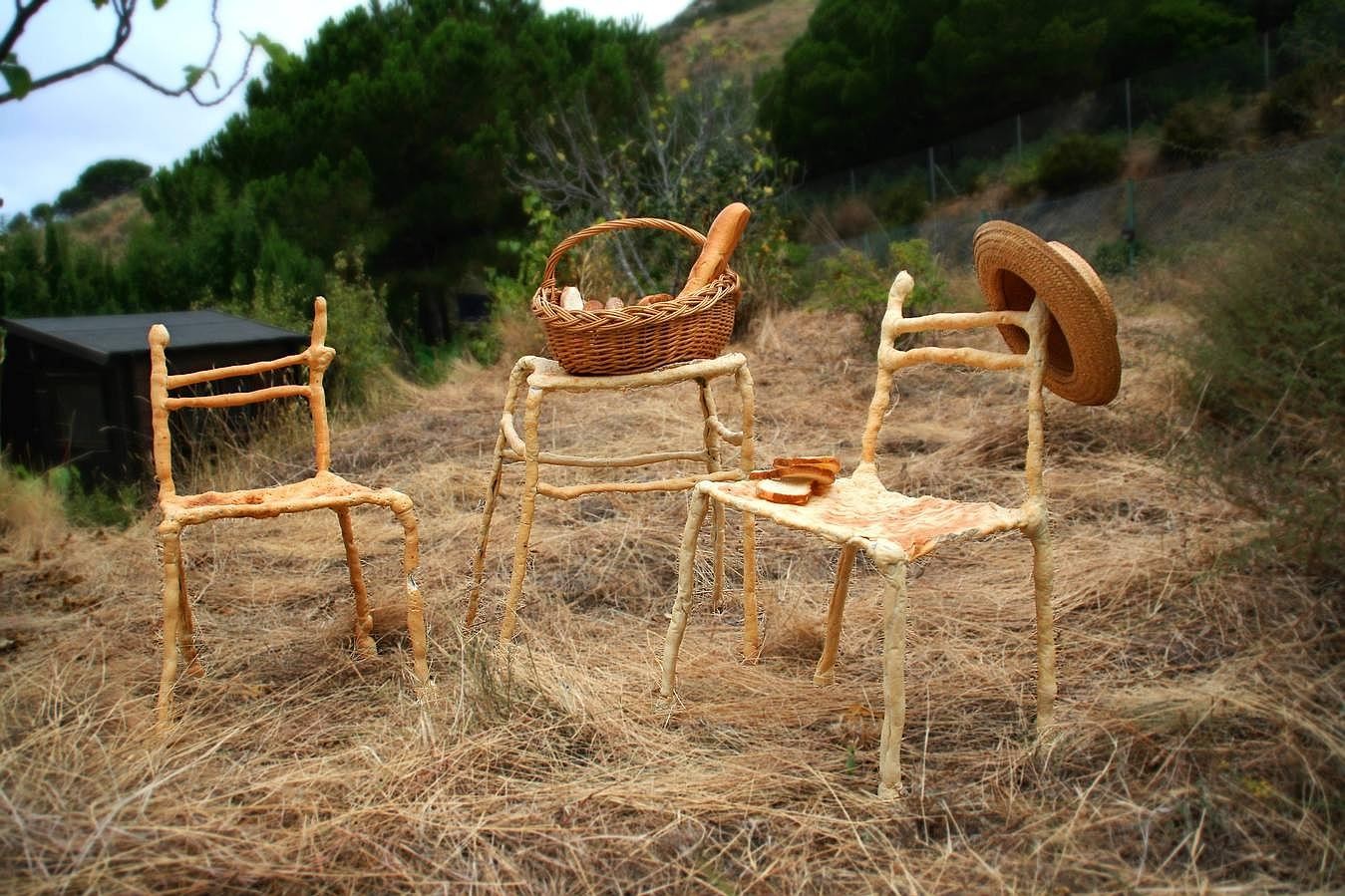 Enoc Armengol tuvo una gran idea cuando diseño Panpaati, un juego de dos sillas y una mesa hechas de pan. Después de realizar una estructura en alambre, esta es cubierta con masa de pan que una vez horneada da el aspecto que veis en el siguiente vídeo.