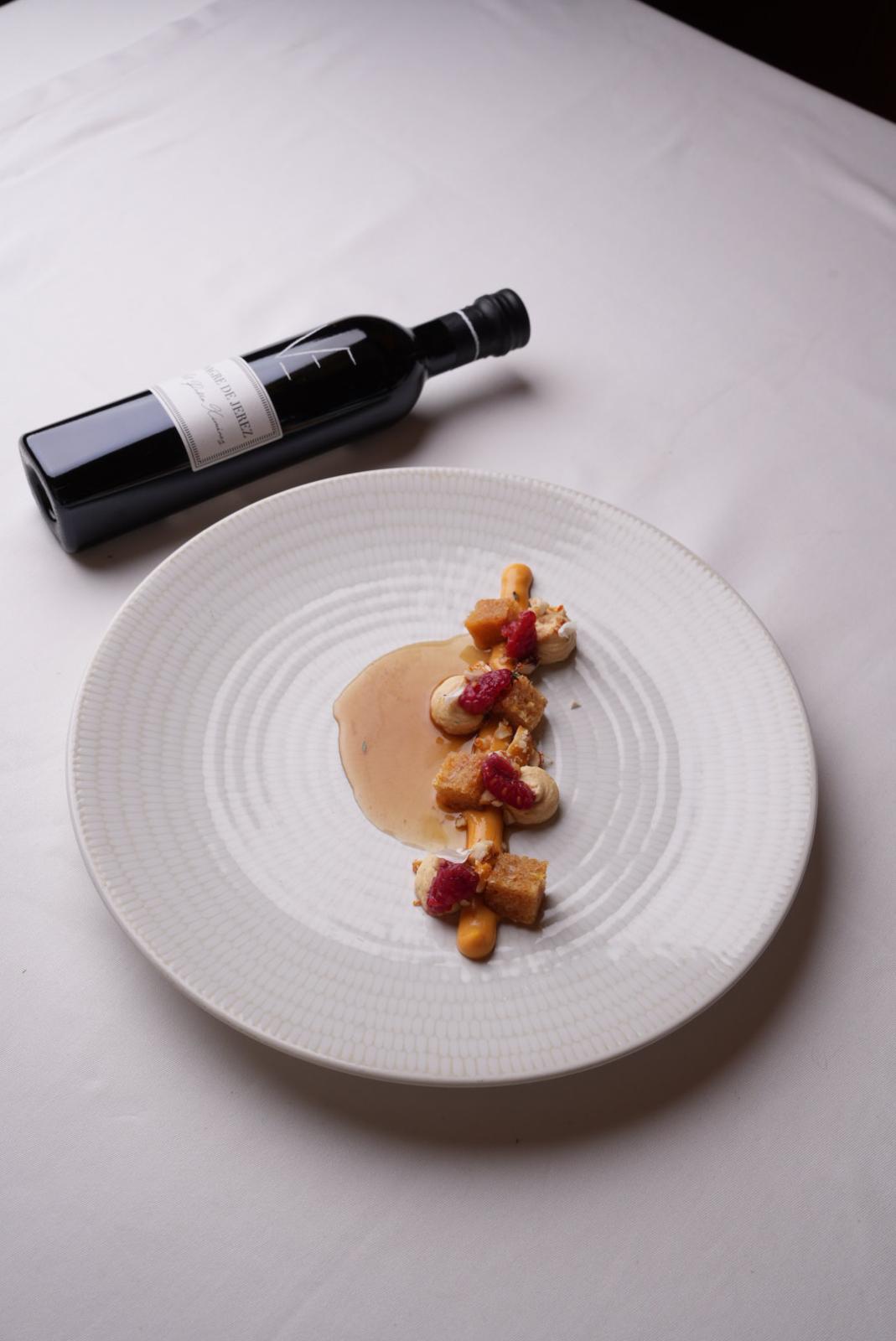 Su receta “Jerez y su Tarta de Queso” ha destacado especialmente por la destreza y equilibrio en el uso de diferentes variedades de Vinagre de Jerez en las distintas elaboraciones que componen el plato.
