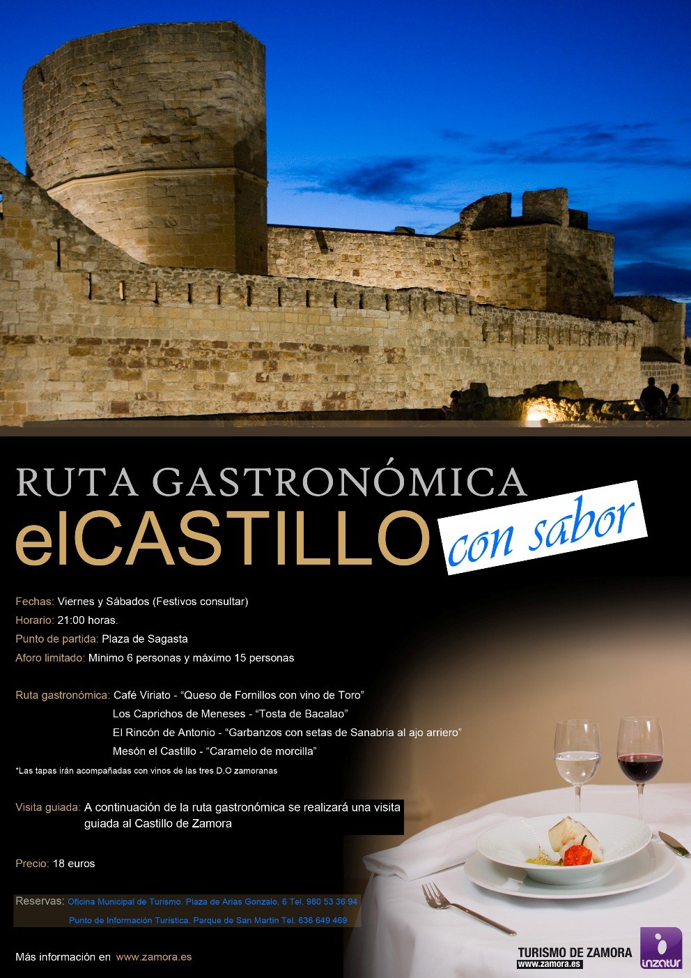 Tras realizar una reserva previa en la Oficina Municipal de Turismo (Tfno.: 980 533 694), ya que el aforo es limitado: un mínimo de seis personas y un máximo de 15, toda aquella persona que desee participar de esta actividad podrá descubrir y degustar los mejores monumentos y productos de la ciudad de Zamora como son el queso de Fornillos; el bacalao; garbanzos de Fuentesauco o la morcilla zamorana.