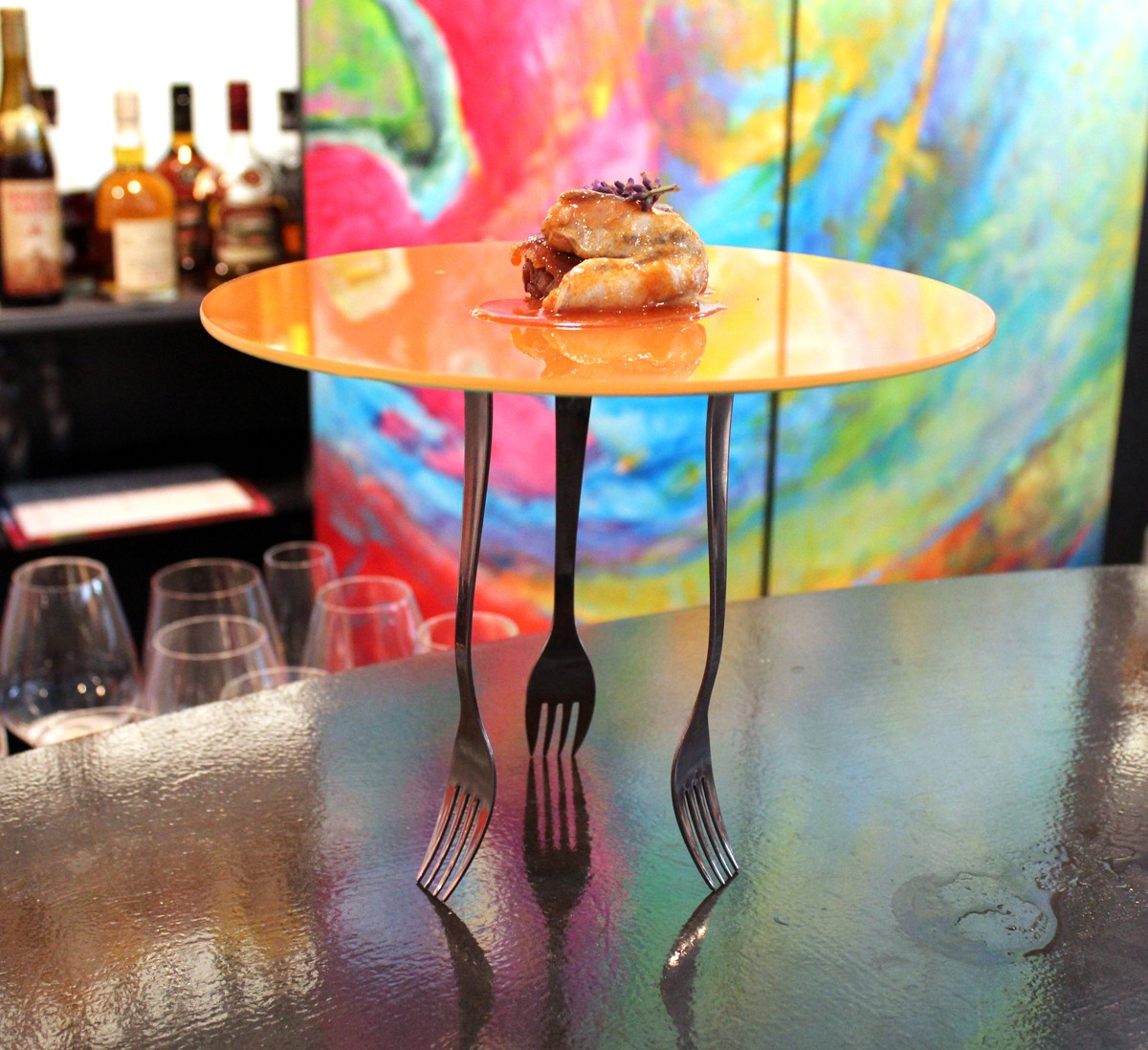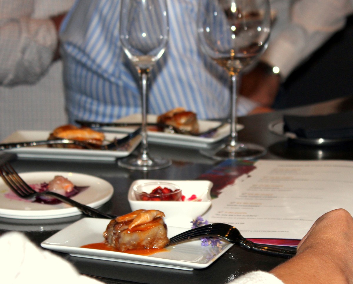 El cocinero David Fernández nos sorprendió a todos los comensales con su tapa «Cocochas Rabitos«, compuesta por una cococha de merluza sobre un trozo de rabo de cerdo guisado y aderezado con su propio jugo. Simplemente delicioso.