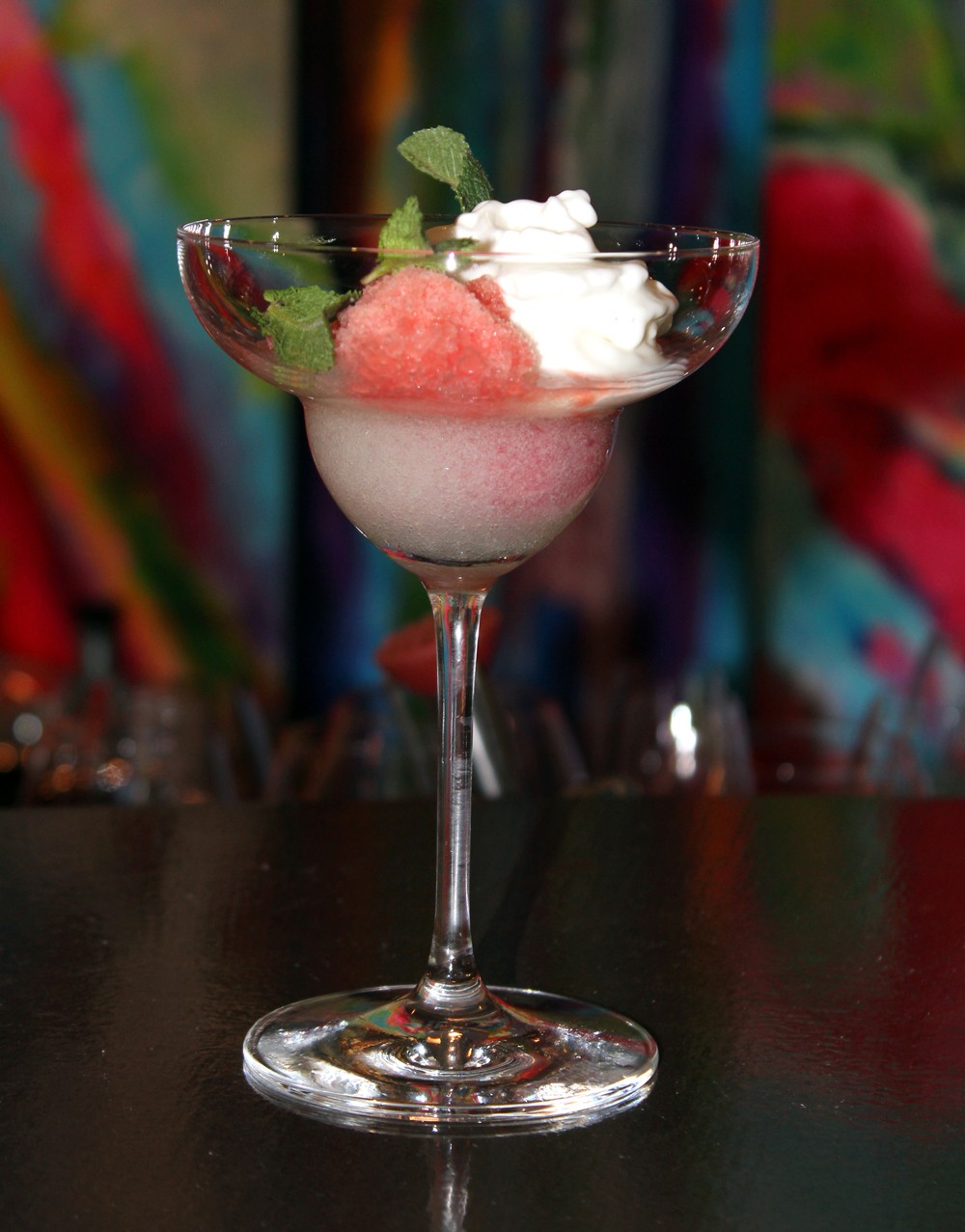 Y para terminar Vincenzo Marconi nos preparó en un momento un postre ligero y refrescante «Helado de Tinto de verano, con granizado de sandía y espuma de yogur«. Ligero y apetecible después de un gran día como fue «El Día de los Sueños«.