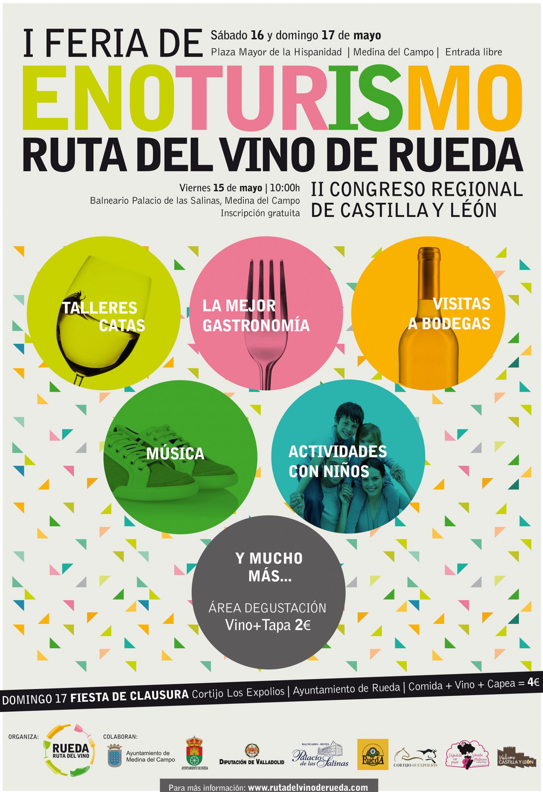 I Feria de Enoturismo de la Ruta del Vino de Rueda. Se celebrará del 15 al 17 de mayo de 2015 en Medina del Campo, Valladolid. Un nuevo evento vitivinícola en Castilla y León que promocionará una de las Rutas de Vinos más importantes de la región a través de visitas a bodegas, catas guiadas de vinos, quesos y aceites, talleres para niños, conferencias y jornadas profesionales, acompañados de los mejores vinos y gastronomía.
