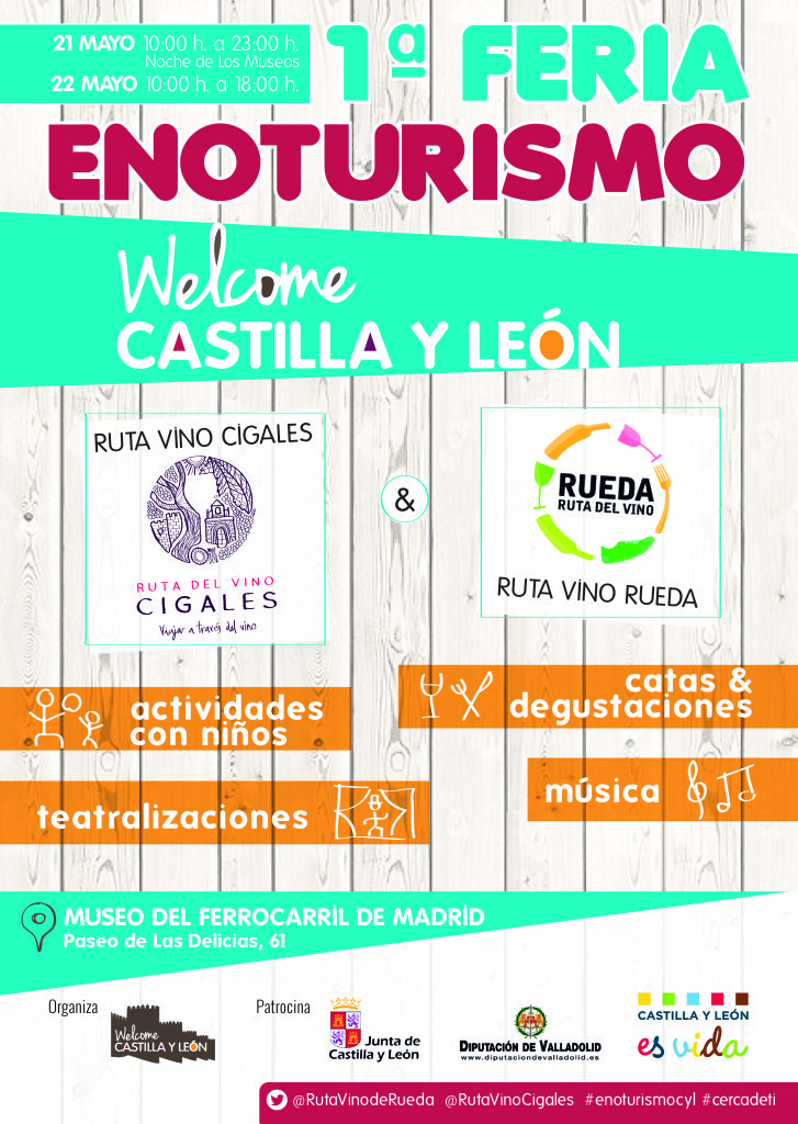 Los recursos enoturisticos de Castilla y León son innumerables y, a veces, hasta desconocidos. Para dar a conocer todos los detalles y actividades que desarrollan dos de las rutas del vino más activas de la región, como son las Rutas del Vino Cigales y de Rueda, este próximo fin de semana (21 y 22 de mayo) tendrá lugar en el Museo del Ferrocarril de Madrid la I Feria de Enoturismo Welcome Castilla y León.