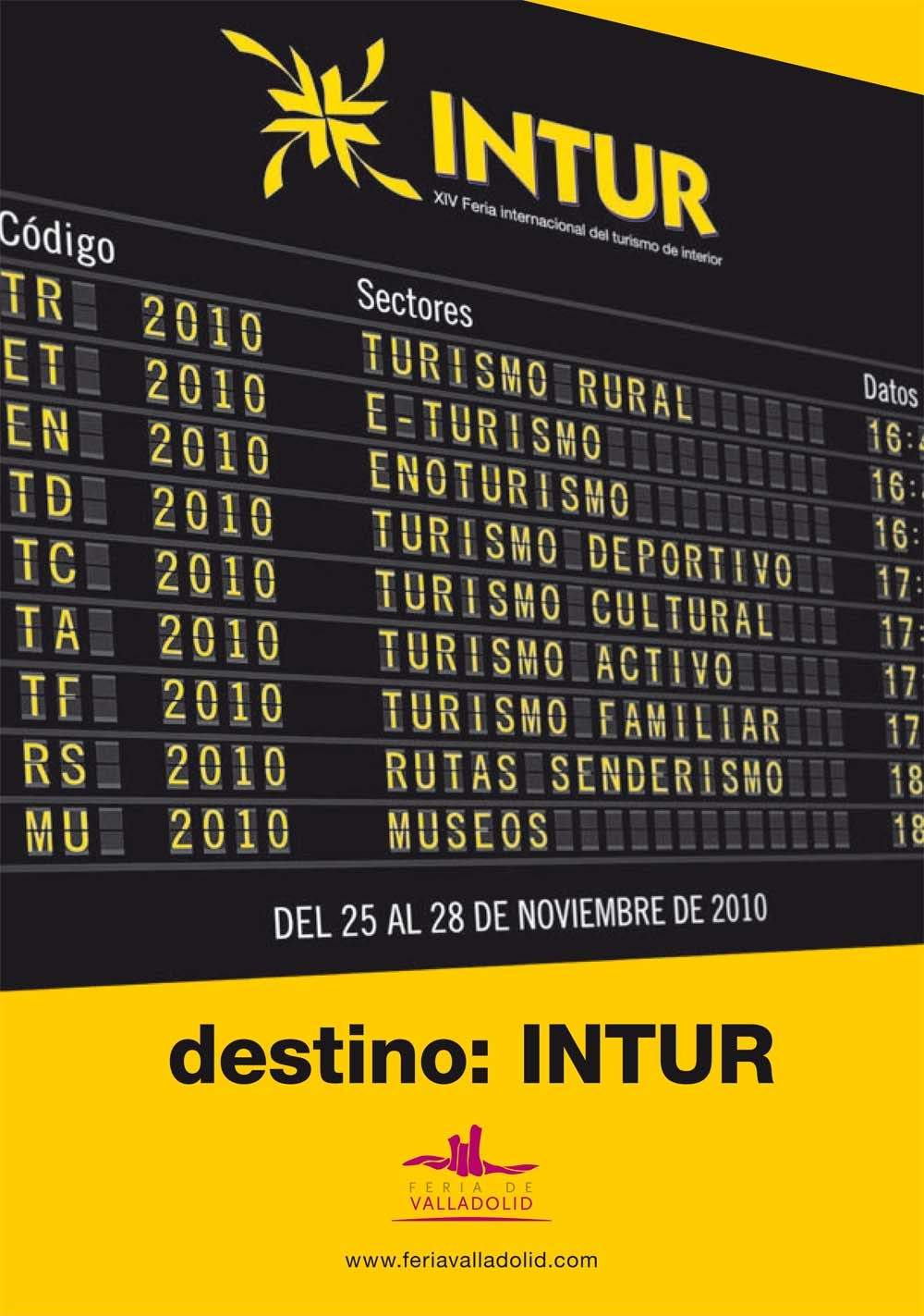 Cuatro días en los cuales el Turismo Rural, el Turismo Deportivo, el Turismo Cultural, el Turismo Activo, el Turismo Familiar, el Turismo Gastronómico, el E-Turismo, el Turismo del Vino o Enoturismo, se darán cita en Intur, Valladolid.