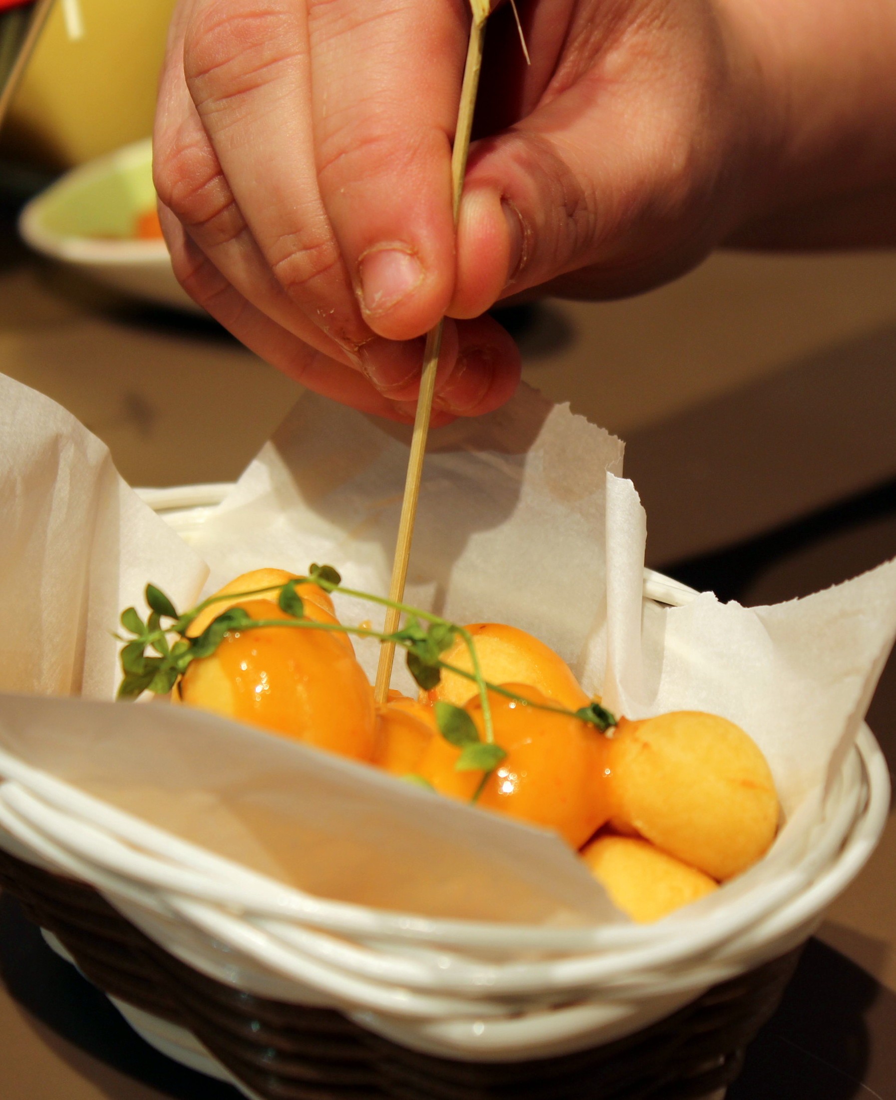 Entre las versiones que pudimos ver, y catar, durante esta presentación, están las «Patatas bravas suflé» que preparó el cocinero Jesús Almagro, del restaurante Canseco & Mesteño; unas «bravas con crema de ajo y huevo a baja temperatura», de la cocinera Miriam Hernández, La Casa del Pregonero (Chinchón); unas «bravas con salsa de yuzu», de María Jimenez, de la escuela de cocina Alambique de Madrid; «Bravas con oreja crujiente», del cocinero José Sacristán, restaurante Pombo 18; «Gnoggi bravos» de Rebeca Hernández, restaurante La Berenjena; y las bravas más reconocidas actualmente fueron las que preparo Rubén Príncipe (La Terreza del Mercado, en Alcalá de Henares) en forma de cubo y rellenas.