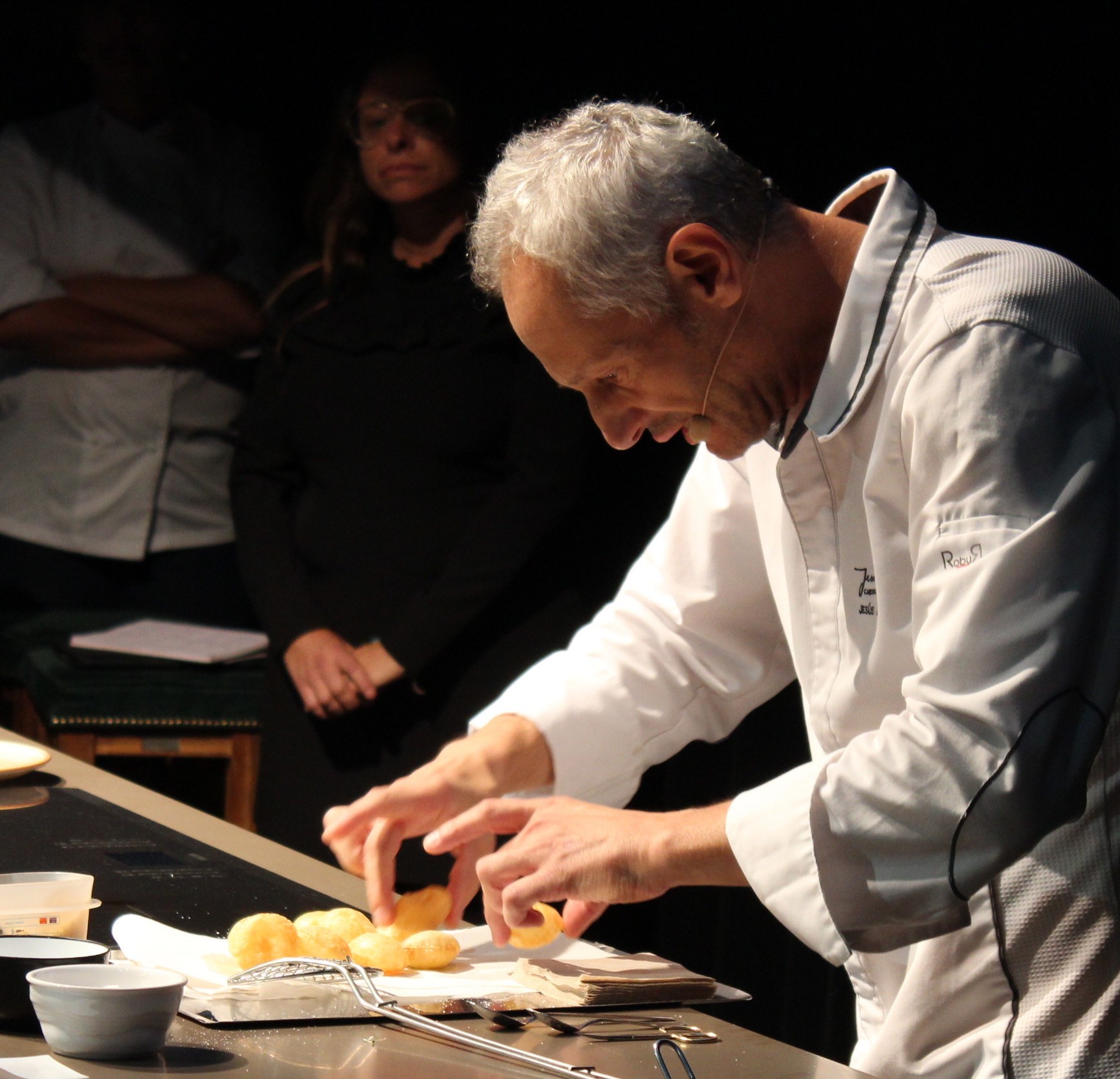 Esto tuvo lugar el pasado lunes 24 de octubre en un acto, presentado por Sacha Hormaechea y Cristina Martínez, en el cual siete cocineros de ACYRE elaboraron diferentes recetas de patatas bravas cada una de ellas con su punto de vista.