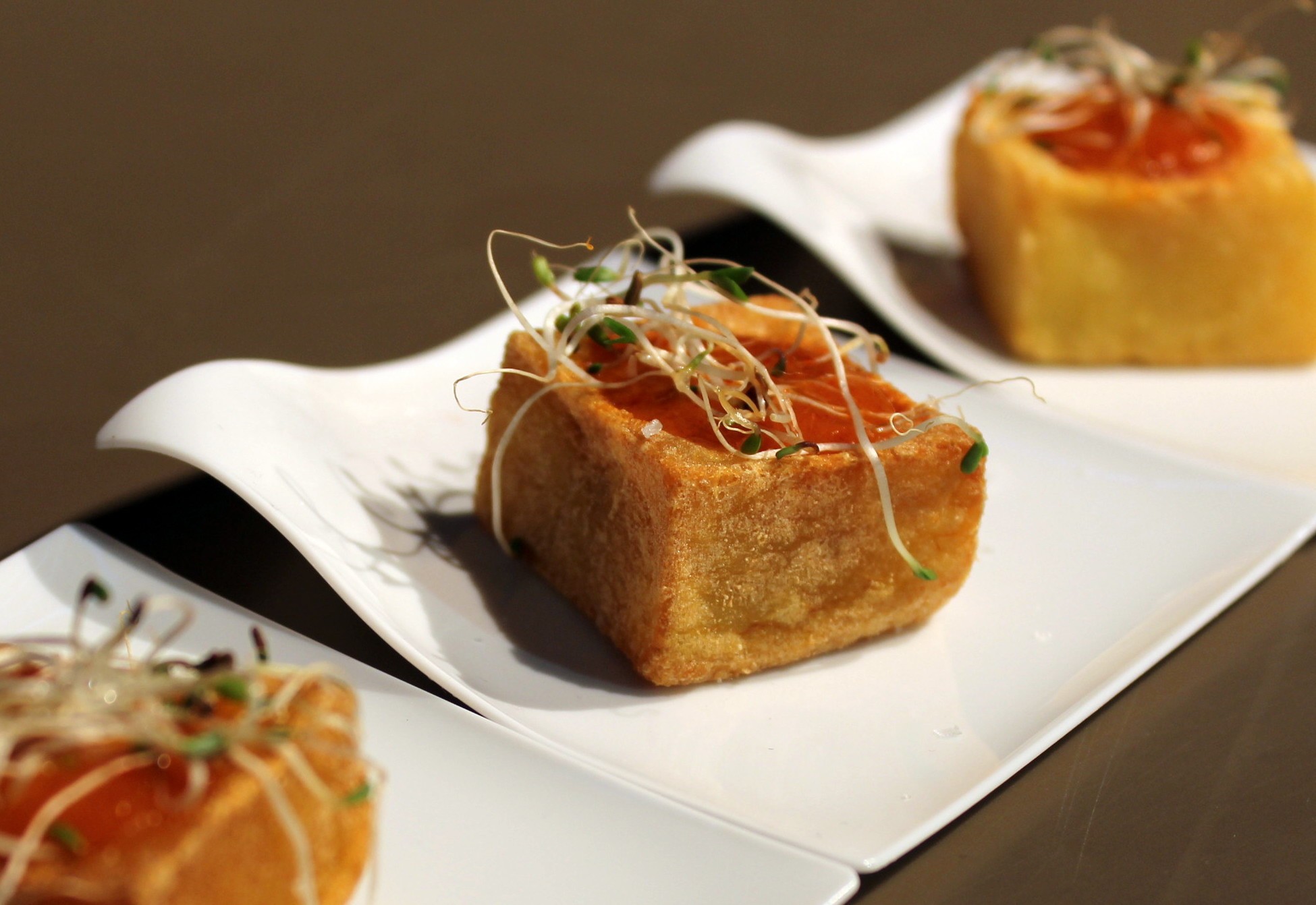 Para comenzar la «reinterpretación» de alguna de las mejores recetas de la cocina madrileña nada mejor que empezar por la más castiza y popular: las Patatas Bravas.