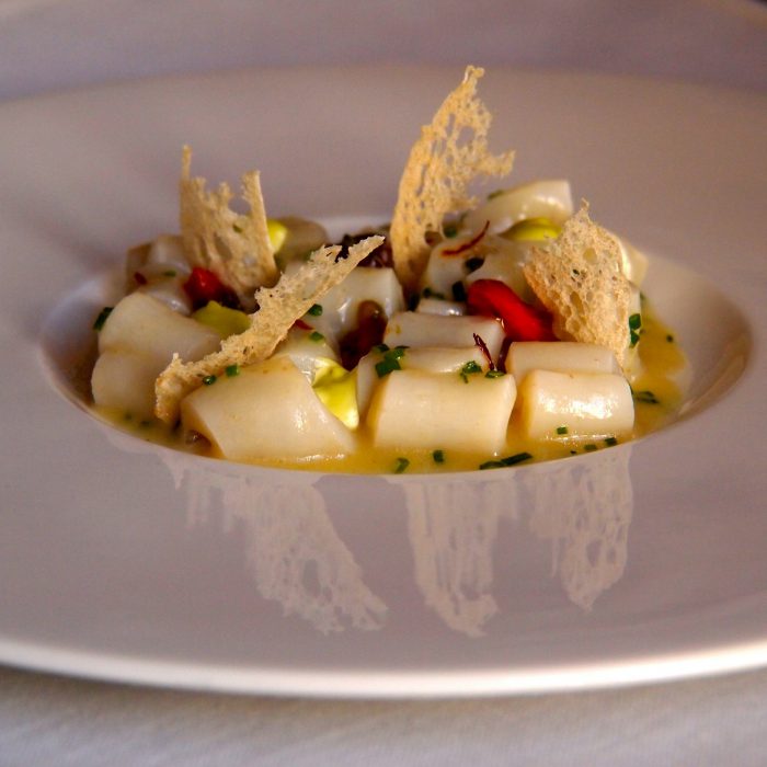 - Víctor Trochi (del Restaurante Les Magnolies de Arbucies –Girona–) con la receta «Tagliatelli de aceite de oliva, vieras y mejillones»
