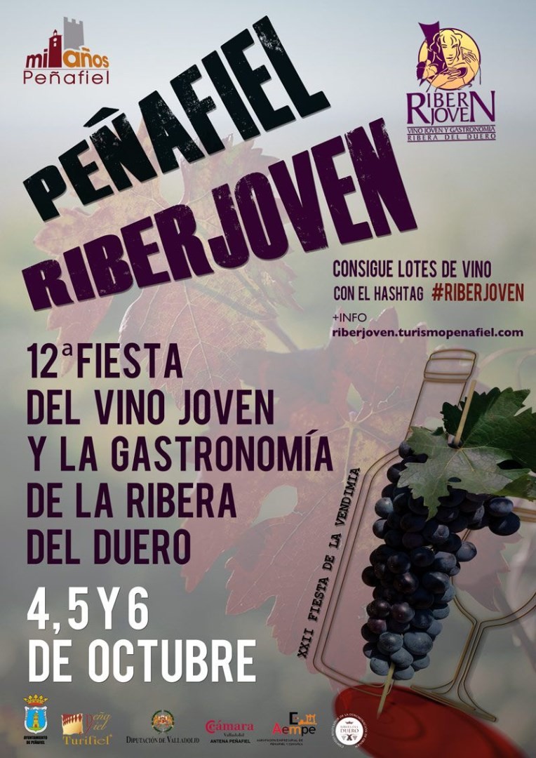 La localidad vallisoletana de Peñafiel acogerá este próximo fin de semana, 4, 5 y 6 de octubre de 2013, una nueva edición de la Fiesta de la Vendimia, dentro de la cual se enmarca la doceava edición de «Riberjoven», la fiesta del vino joven y la gastronomía de la Ribera del Duero.