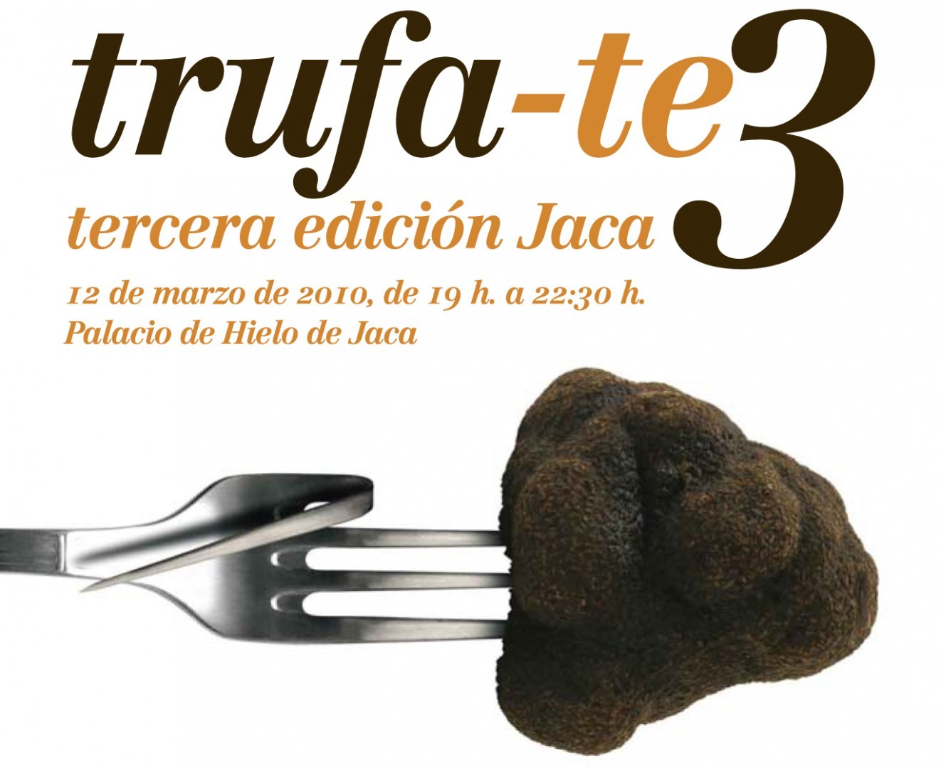 Coincidiendo con el final de la campaña de recolección de la trufa negra en el Alto Aragón, y tras dos ediciones anteriores, celebradas en Huesca y en Barbastro, la Diputación de Huesca en colaboración con la Asociación de Recolectores y Cultivadores de la Trufa de Aragón, el Ayuntamiento de Jaca y la Comarca de la Jacetania, organizan por tercer año consecutivo «Trufa-te«, un evento gastronómico que acercará al paladar de todos aquellos que se acerquen hasta el Palacio de Hielo de Jaca el sabor de la trufa negra (tuber melanosporum).
