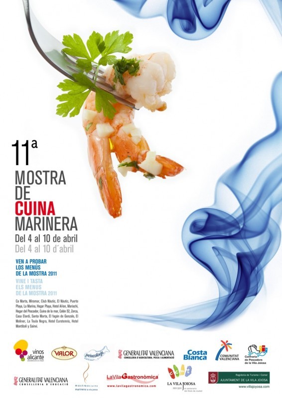 El Ayuntamiento de Villajoyosa, a través de las Concejalías de Turismo y Comercio, celebrará entre el 4 y el 10 de abril de 2011 la XI Mostra de Cuina Marinera de la Vila Joiosa.