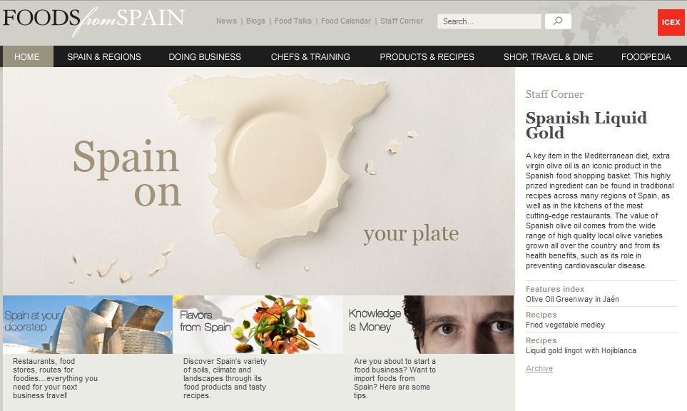Foods from Spain (Alimentos de España) es el nombre de la nueva web para la promoción de la gastronomía española que ha puesto en marcha el Ministerio de Industria destinada al mundo anglosajon.
