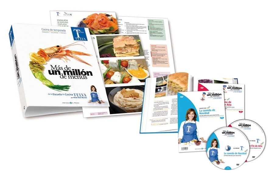 A partir del próximo domingo 21 de diciembre el periódico El Mundo lanza, en fichas coleccionables y libros DVD’s, “Más de un millón de menús”, de la Escuela de Cocina Telva.
