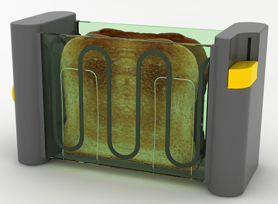 Y para tener unas buenas tostadas que mejor que esta «tostadoraDyson» transparente.