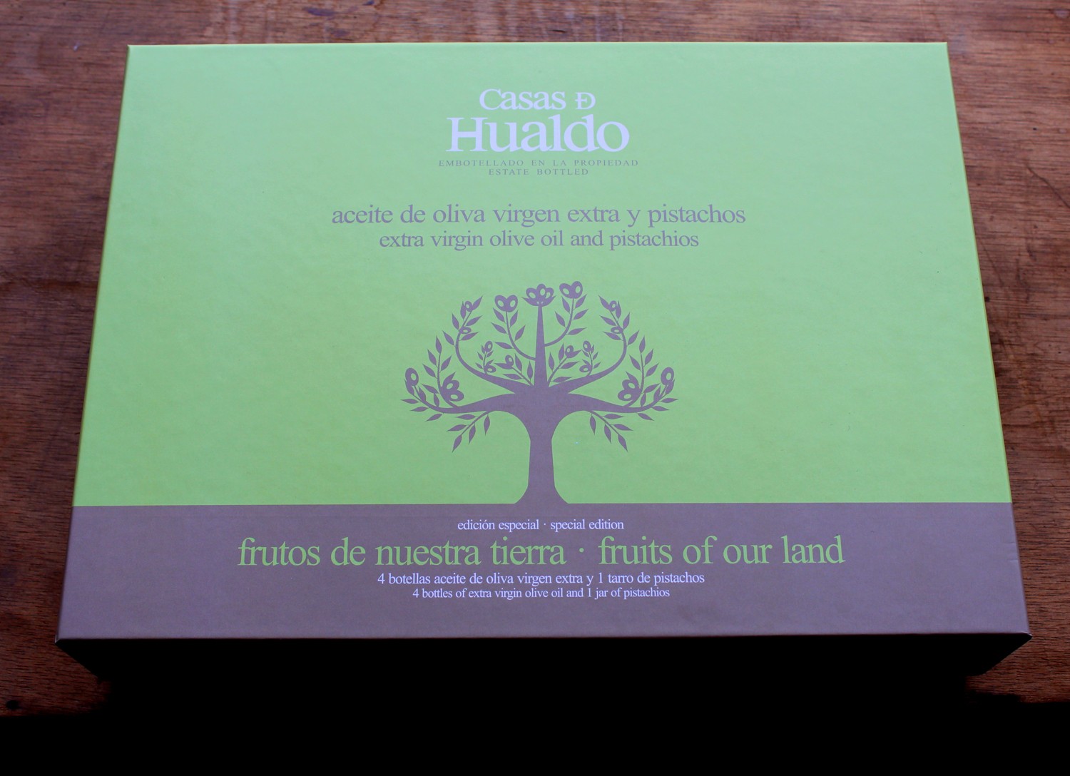 Tanto los aceites como los pistachos vienen presentados en un pack «Frutos de la Salud» que podemos conseguir en la web de «Casas de Hualdo» a un precio de 34 euros.