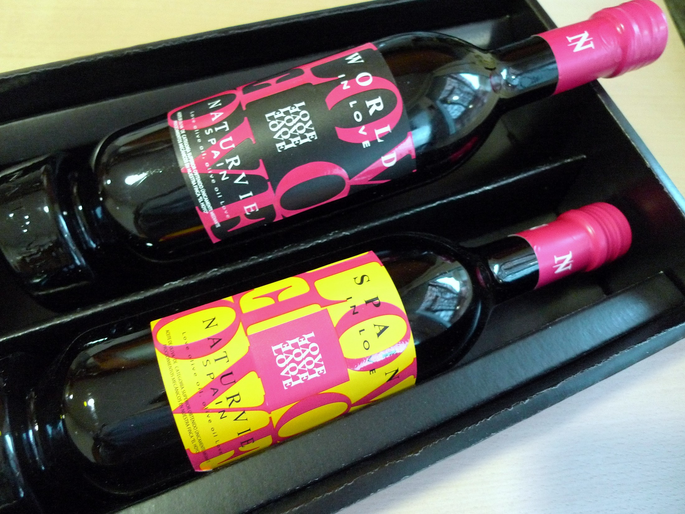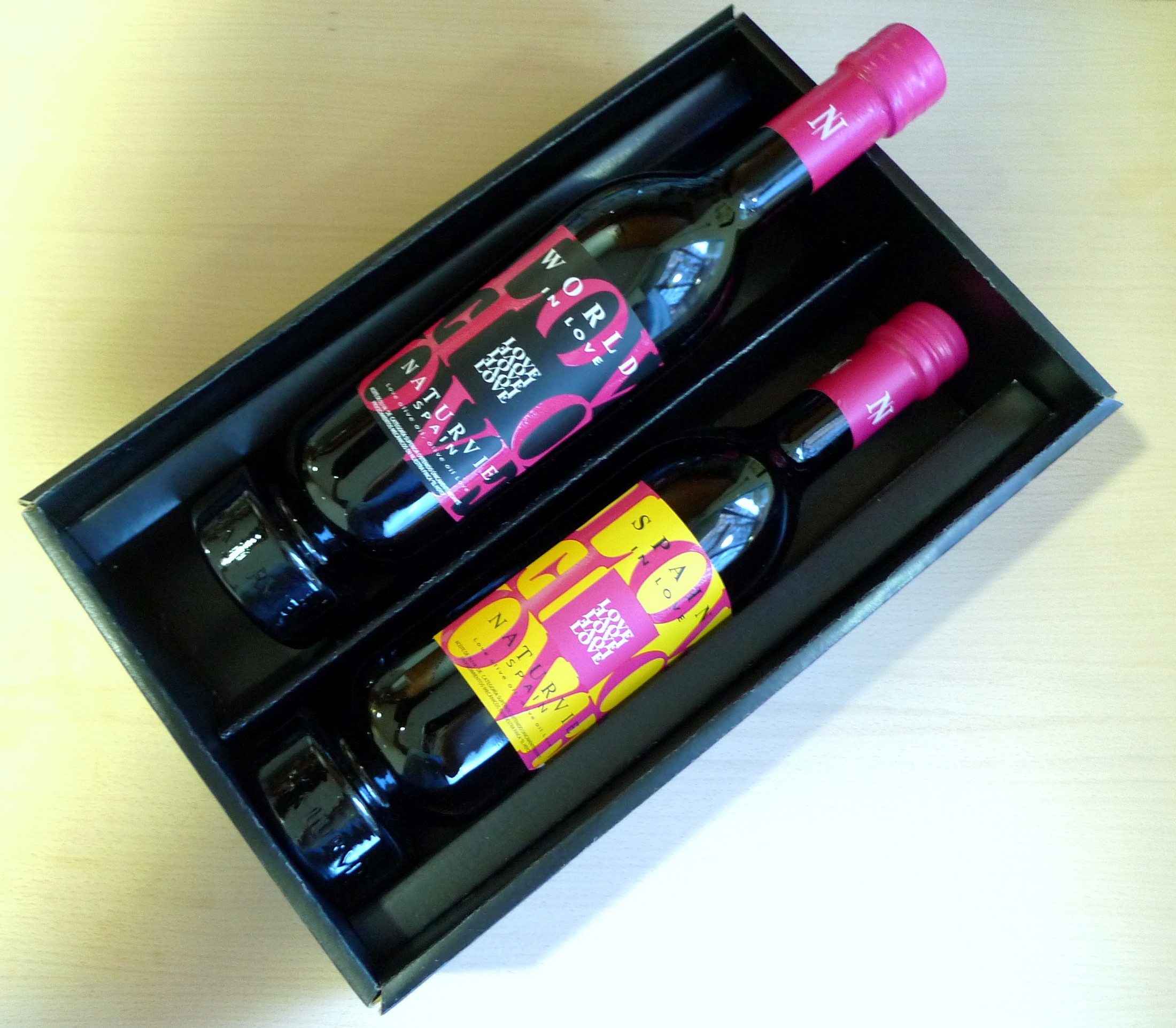 Una propuesta compuesta por dos botellas del mejor aceite de oliva extremeño: «World in Love» y «Spain in Love«. Dos aceites elaborados con mucho corazón. Un producto que nos invita a vivir y sentir una experiencia única junto con nuestra pareja, porque siempre se ha dicho que para llegar al corazón de una persona, primero se ha de conquistar su estómago…