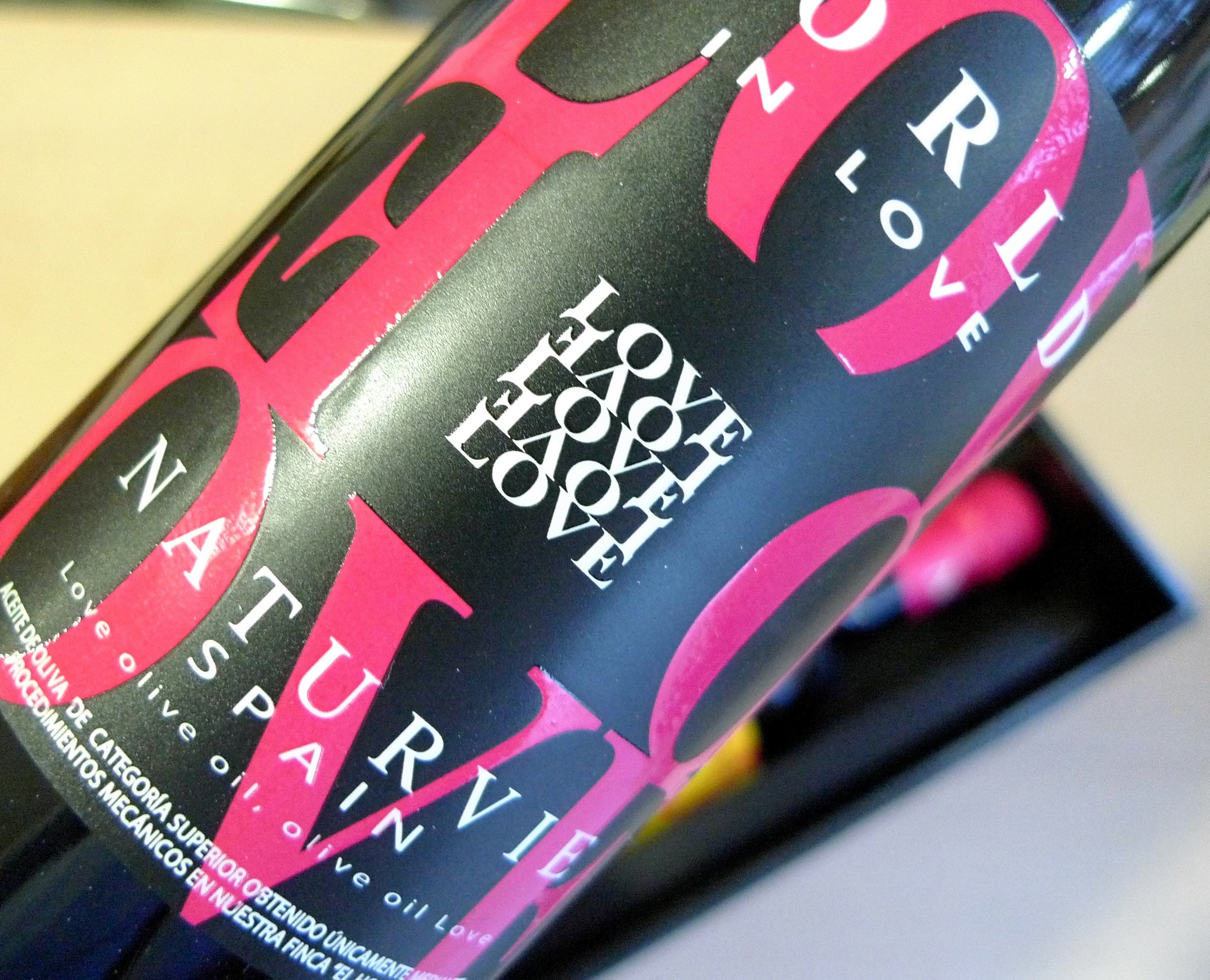 World in Love es un mezcla de monovarietales elaborados a partir de aceitunas de origen italiano (Frantoio), griego (Koroneiki), portugués (Cobransosa), francés (Pichulin) y español (Cornezuelo).