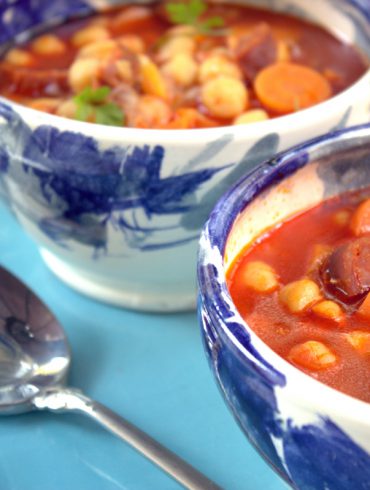 Garbanzos con chorizo es la receta que os proponemos en un día frío como el de hoy. Una elaboración sencilla que podemos prepararla en muy poco tiempo al utilizar en ella garbanzos cocidos en conserva. Los garbanzos cocidos en conserva, o cualquier otro tipo de legumbre, no faltan en nuestra despensa en ninguna temporada del año. Con este tipo de conservas podemos hacer cualquier tipo de elaboraciones: recetas frías en verano, como hummus o ensaladas, o también recetas calientes, como guisos o potajes. Todo ello de una manera limpia y sin emplear mucho tiempo en ello.