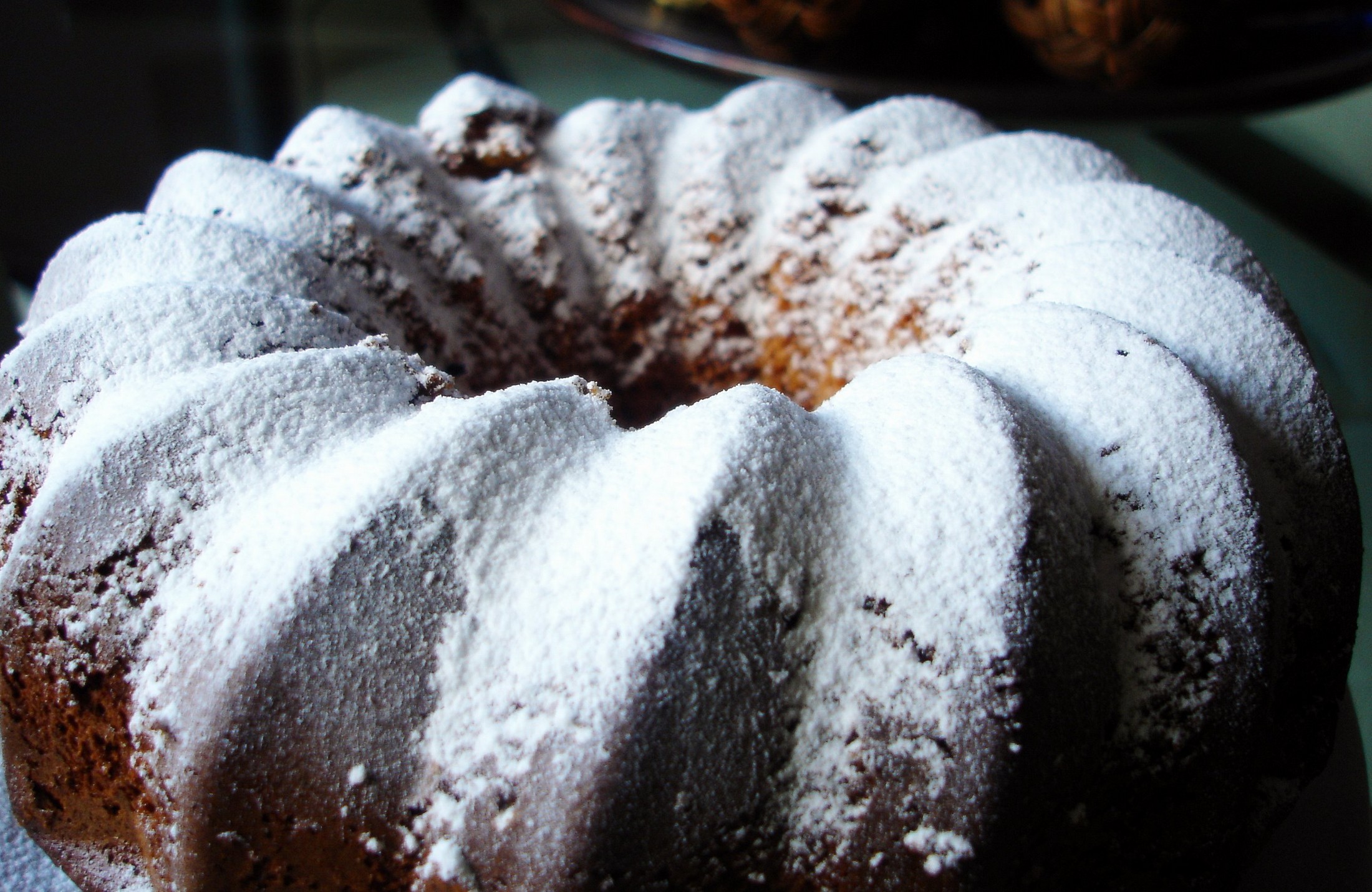 - Sacamos y, una vez frío, decoramos con azúcar glass el bizcocho de turrón.