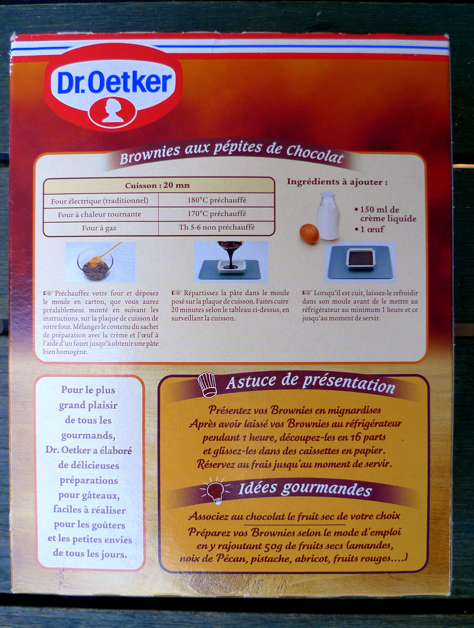 Al final, no he tenido más remedio que dejarme tentar por los Brownies Dr.Oetker y de lo único que me arrepiento es no haber comprado más envases en Francia. Aunque, no se si en España se encuentran Brownies de esta marca, he buscado por internet y sólo he encontrado pizzas Dr.Oetker, de los brownies nada de nada.