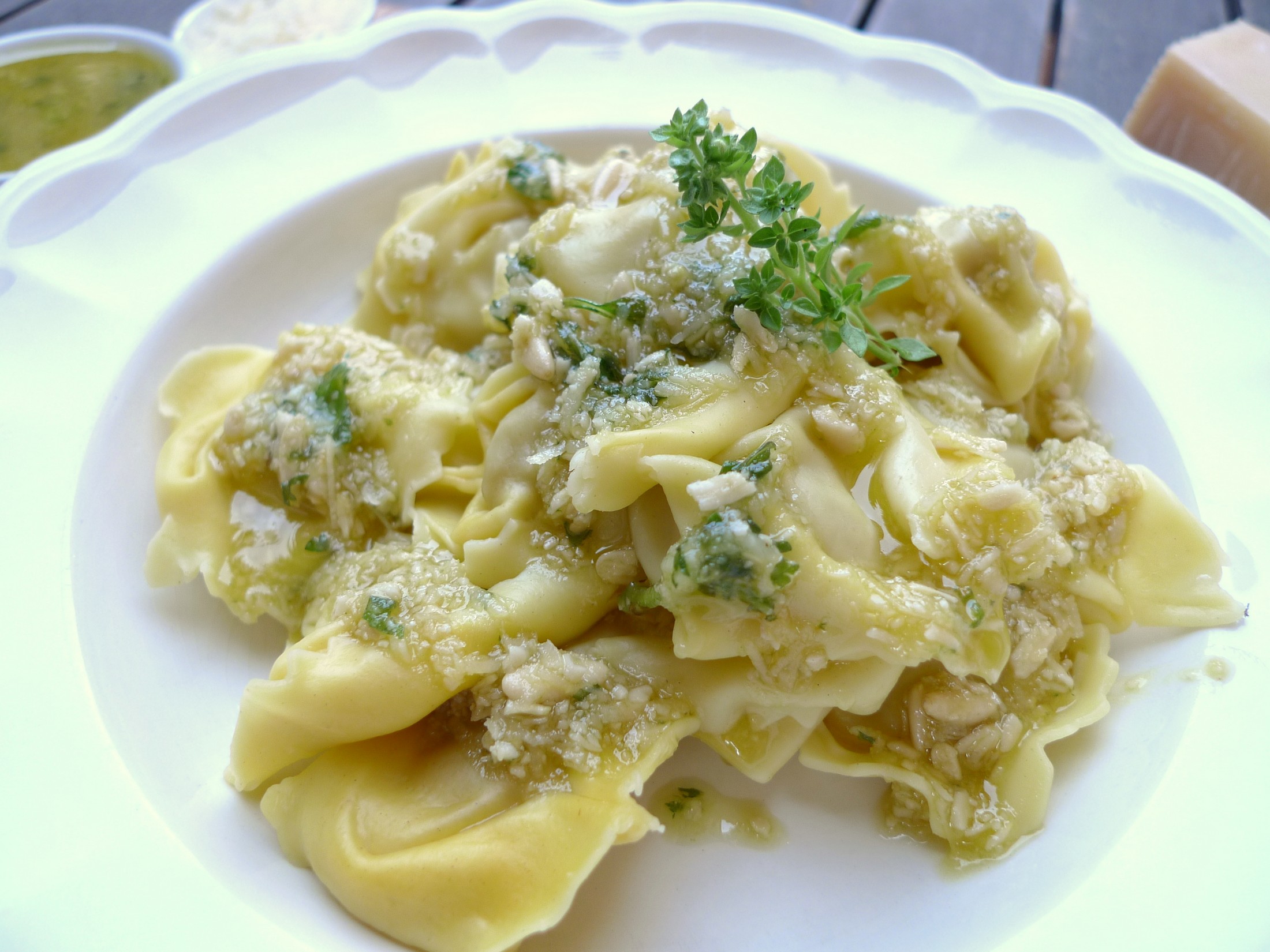 Luego, su preparación depende de los diferentes gustos del consumidor. Nosotros en esta ocasión hemos preparado unos "Cappelletti rellenos de jamón con salsa de pesto".