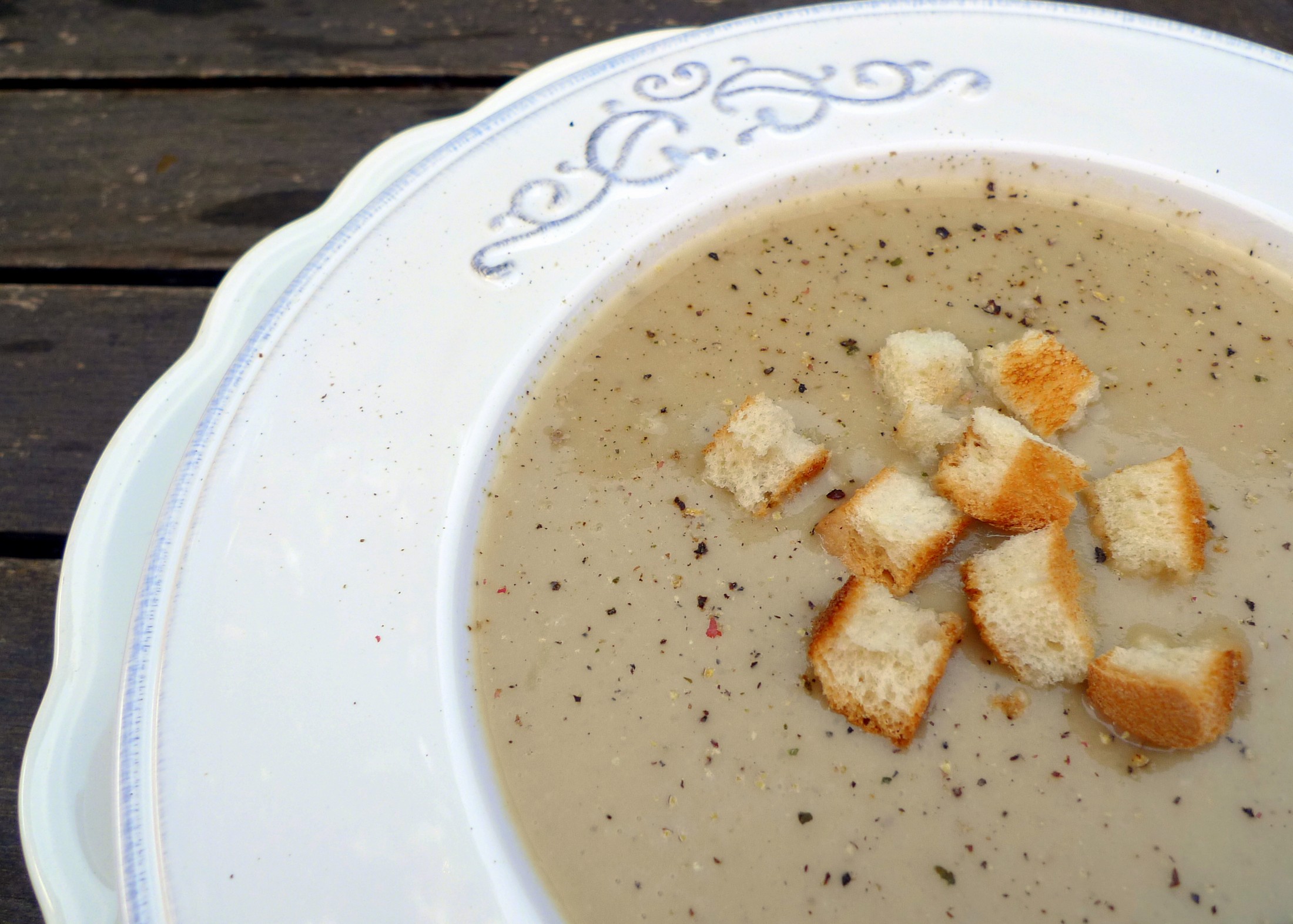 - Servimos la crema de berenjenas bien caliente acompañada por unos picatostes y aderezada con un poco de pimienta recién molida.