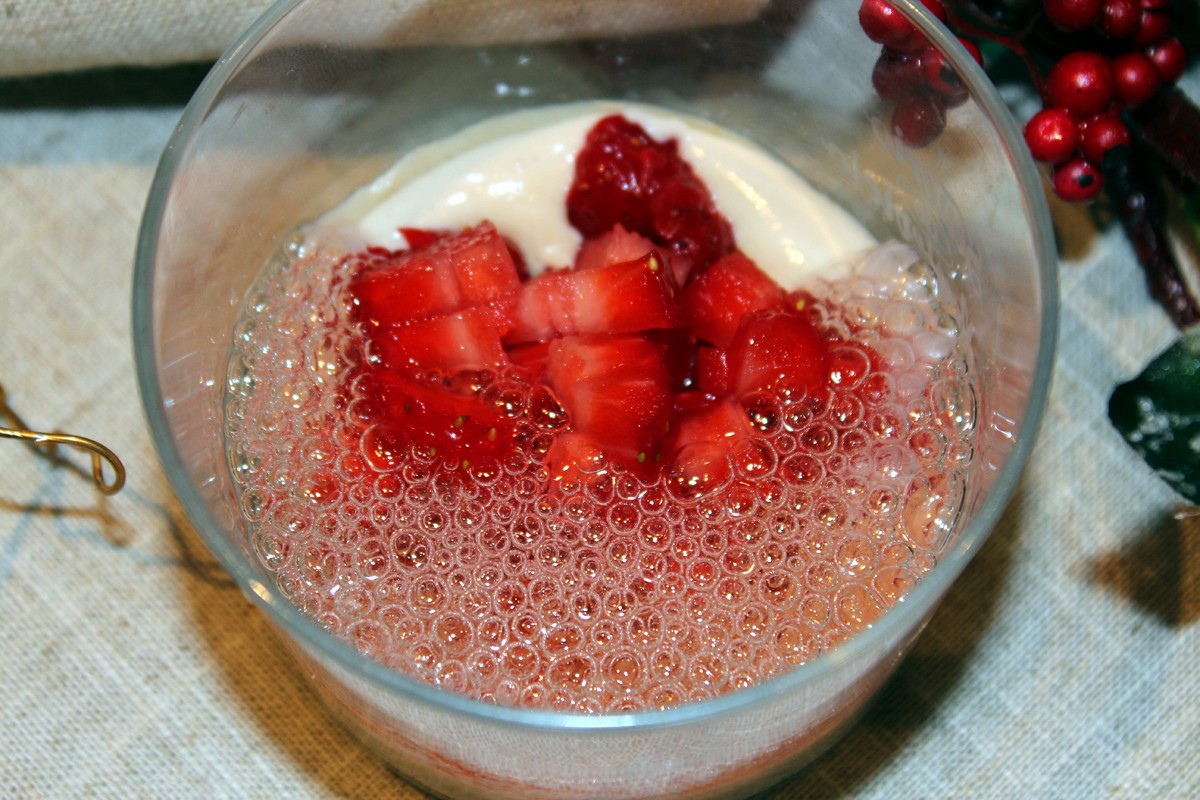 Estos vasitos de Crema de Foie con fresas y cava solido puede ser un aperitivo ideal para la noche de Fin de Año, una receta diferente, llamativa y sugerente para el menú de Nochevieja.