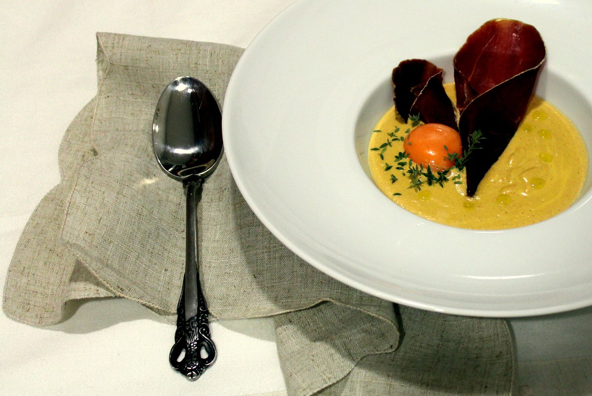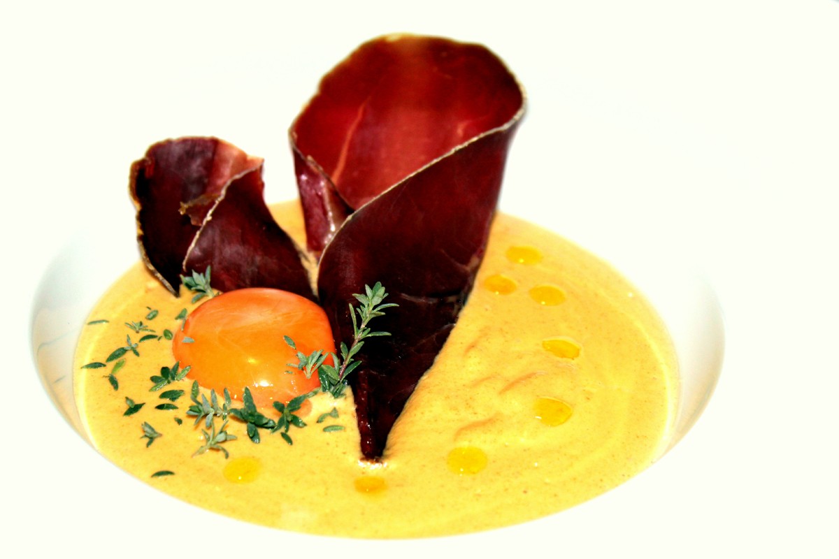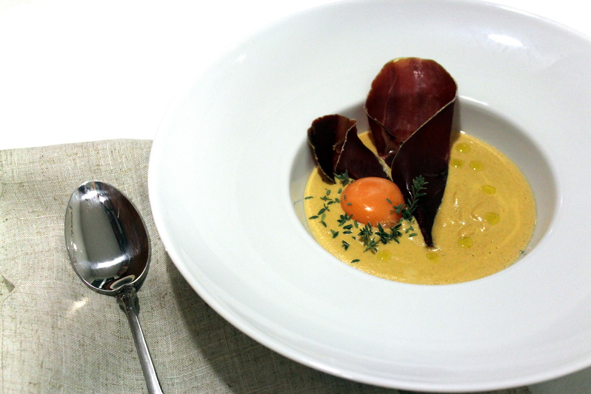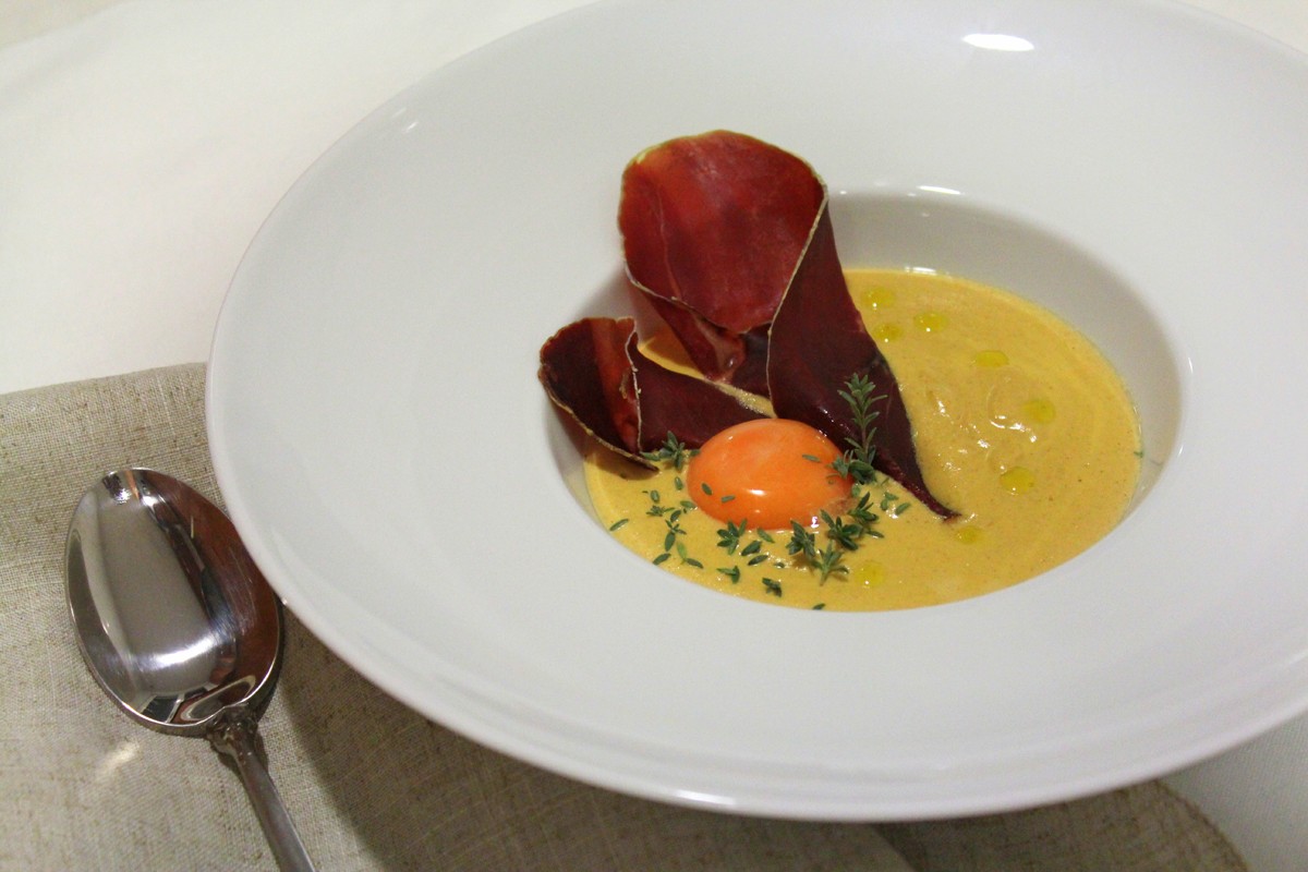 Esta Crema de níscalos con yema de huevo y cecina es una receta de setas realmente sorprendente.