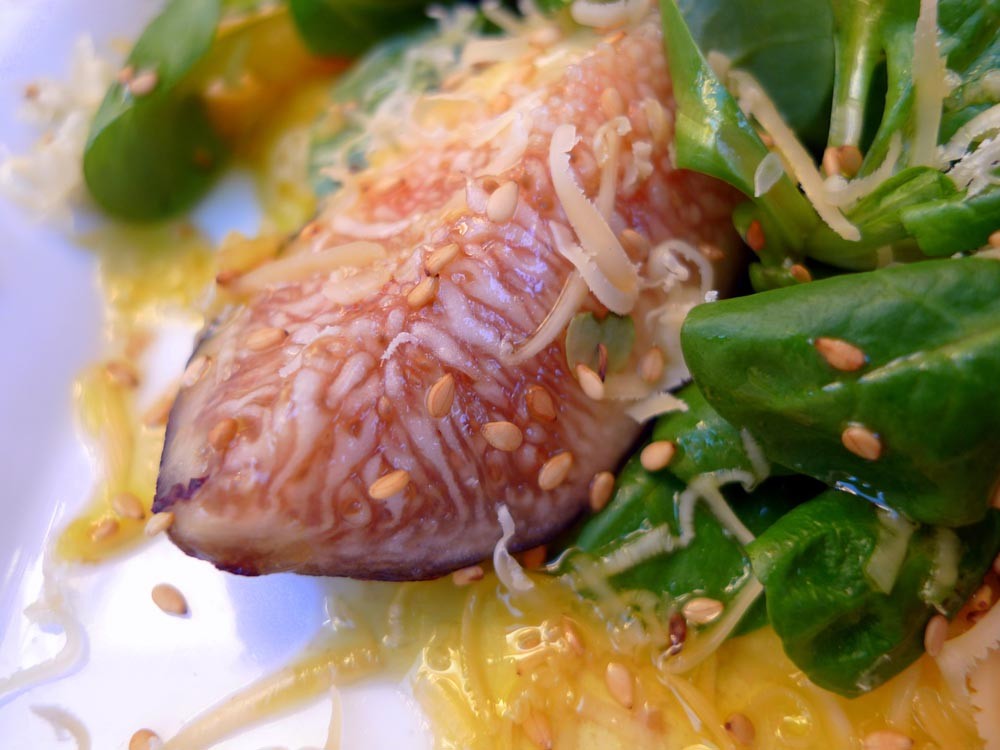 - Lavamos las brevas y cortamos en cuartos, que repartiremos por encima de los canónigos.