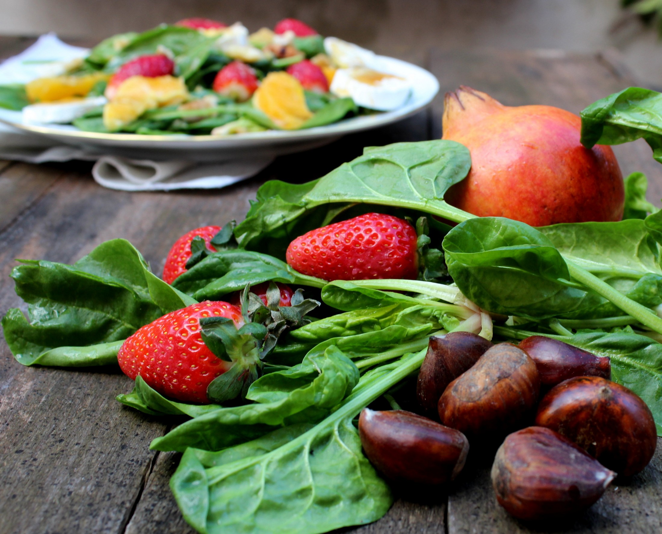 Ensalada de espinacas con queso de cabra, una receta fácil, ideal para desengrasar en Navidad y disfrutar en la mesa. Hemos incorporado algún ingrediente sorprendente como las castañas asadas que dan un toque original y muy rico.