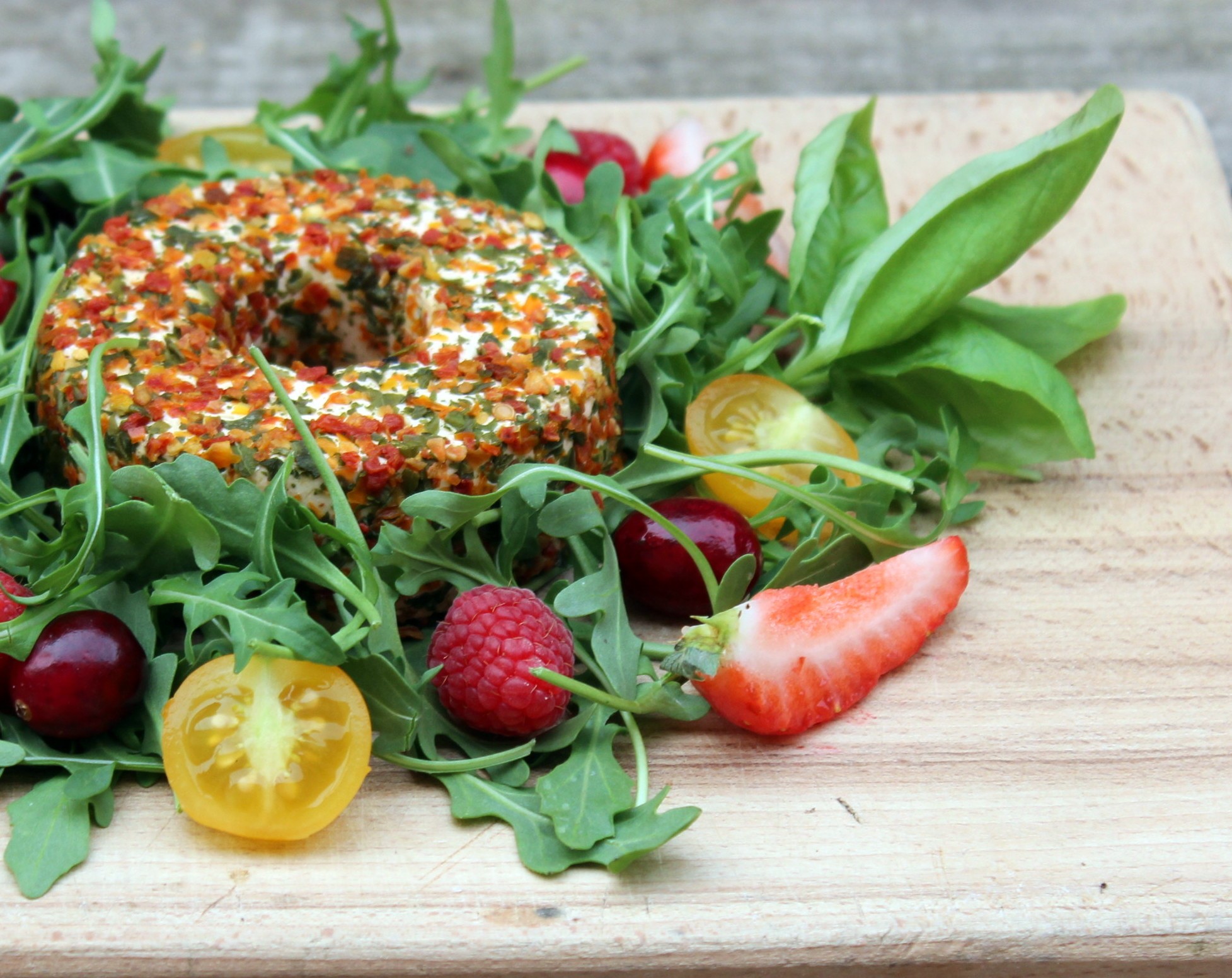 Aparte del queso, debemos reconocer que esta «Ensalada para Navidad» ha sido la sensación de nuestros comensales. Su colorido y su amplio repertorio de frutos rojos hacen de ella en el plato estrella de cualquier menú navideño.