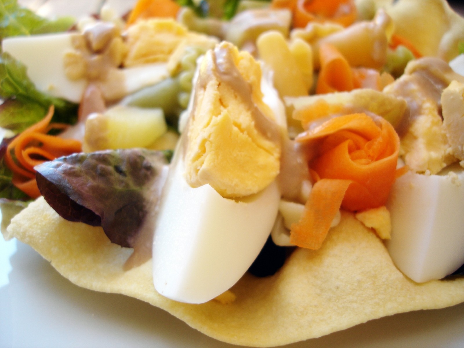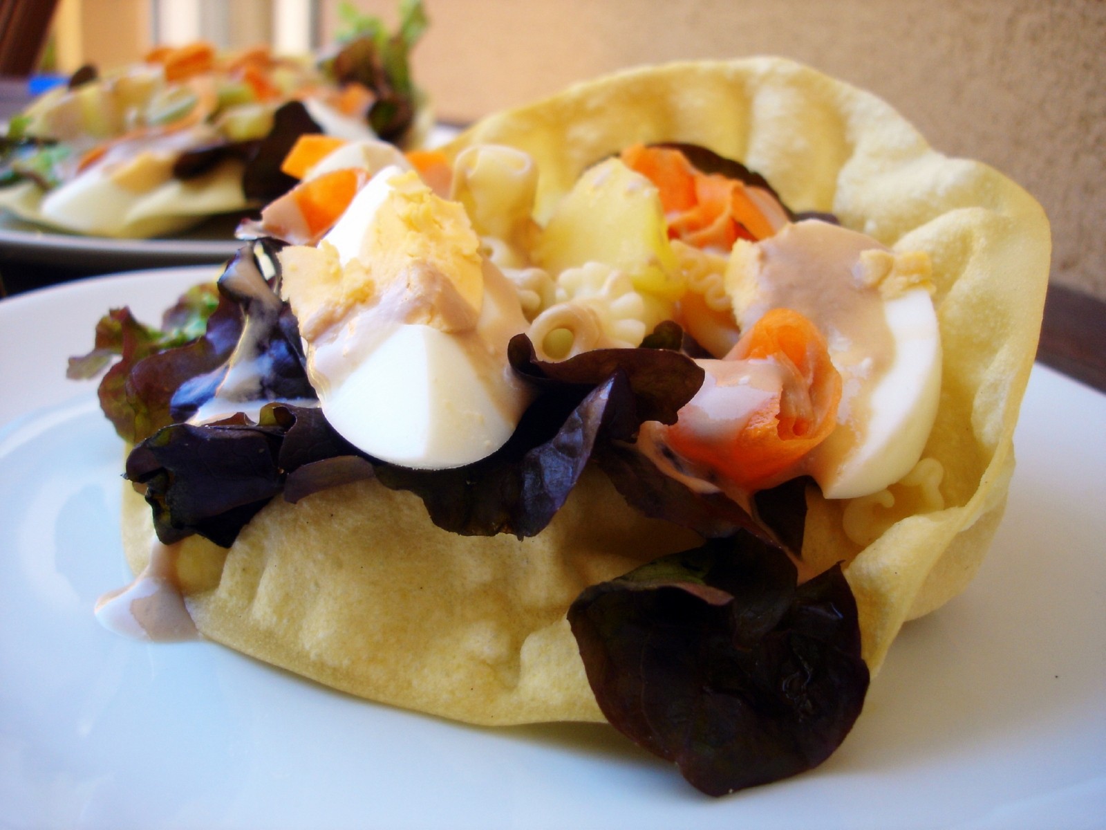 Una manera diferente de presentar la ensalada de pasta es utilizar como recipiente estos panes crujientes pappadums.