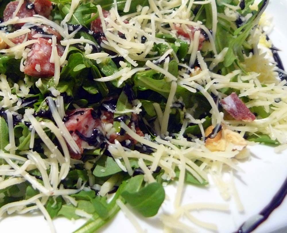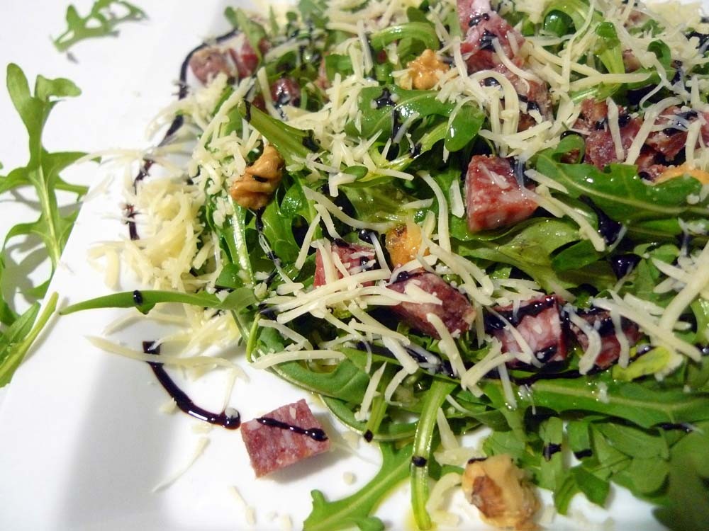 Ensalada de rúcula, nueces y queso parmesano