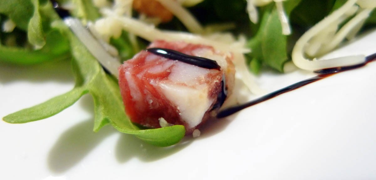 3. Repartimos por encima de la ensalada de rúcula.