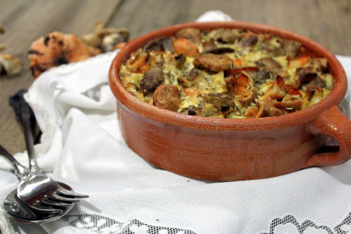 - Colocamos unas setas frescas y limpias por encima, y aderezamos con hierbas provenzales.