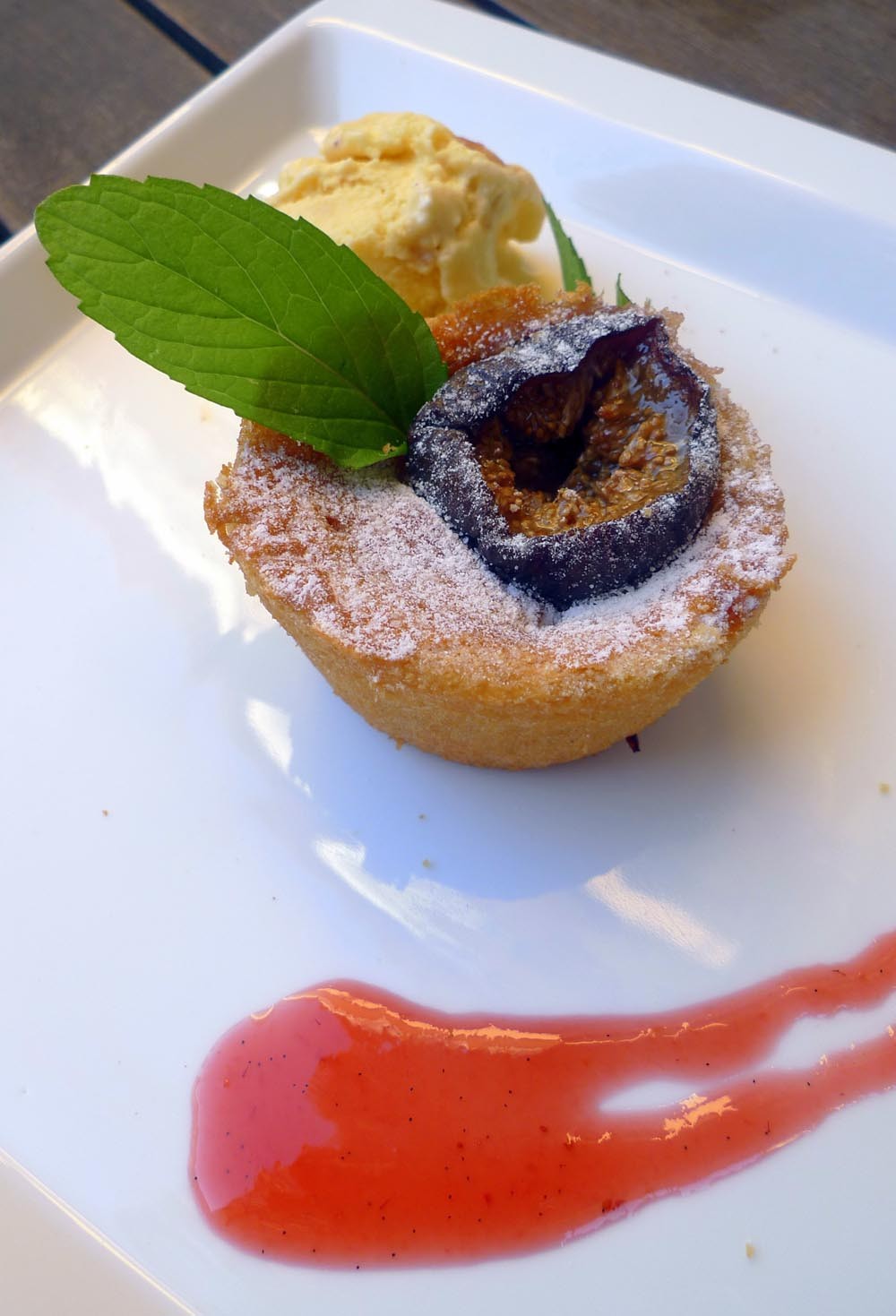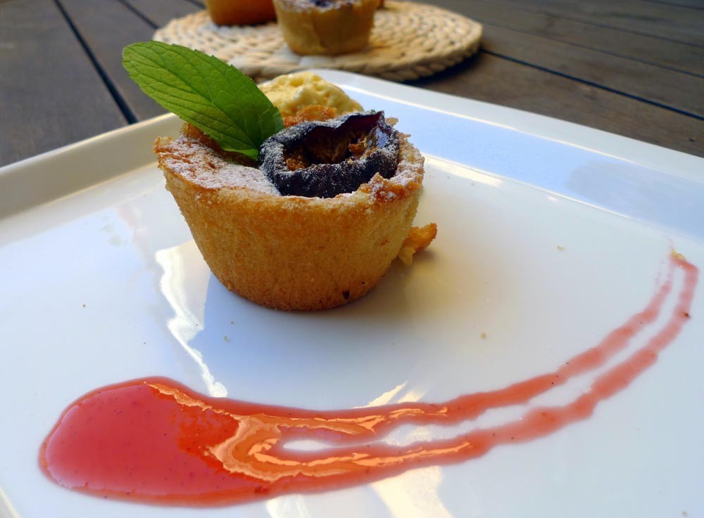 Servimos los flognarde de brevas sólo o, como en nuestro caso, acompañados por una bola de helado.
