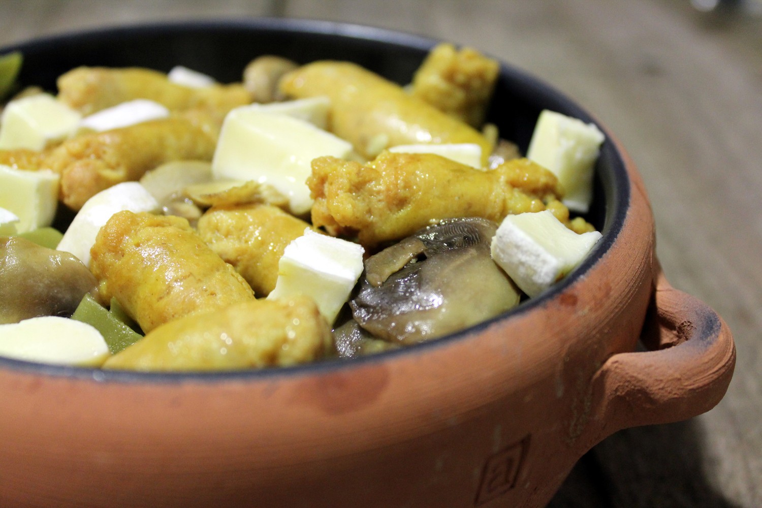 Pero de vez en cuando variamos algo su forma de elaboración aliñándolas o acompañándolas con otros ingredientes como es el caso de hoy que hemos preparado unas judías verdes salteadas con champiñón, dados de queso brie y salchichas al curry.