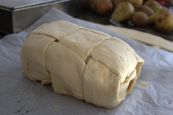 12. Enrollamos el hojaldre sobre el lomo, como si fuera un "regalo".
