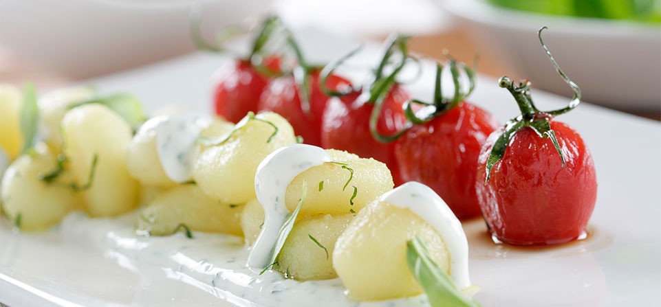 5. Sirve los ñoquis acompañados de los tomates cherry y la salsa de Philadelphia Finas Hierbas.